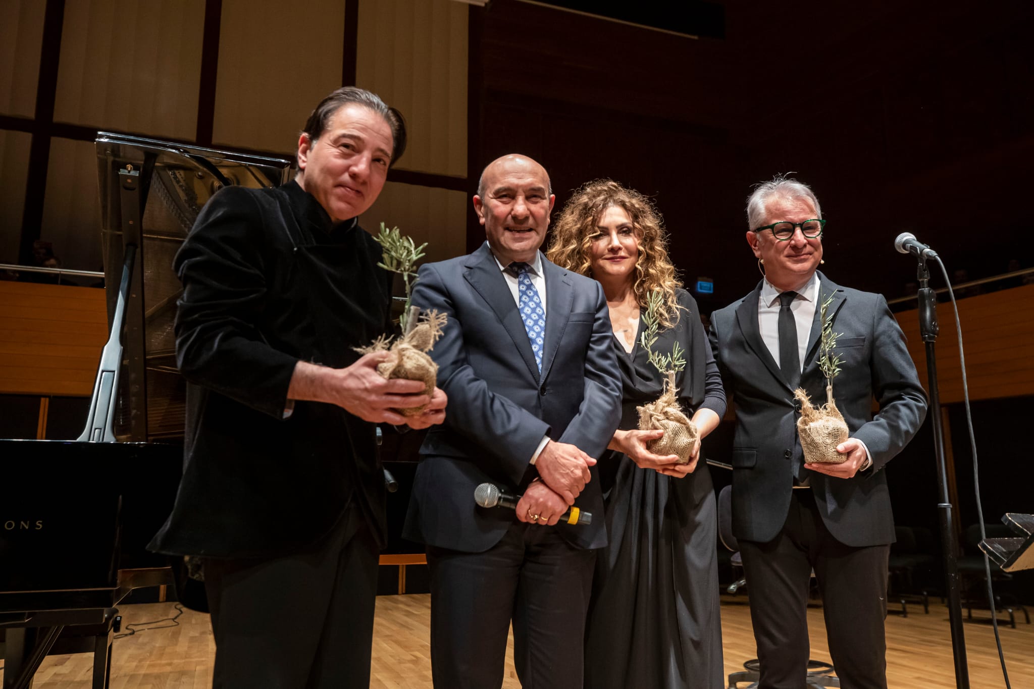 Konuşmaların ardından Başkan Soyer, Fazıl Say ile Serenad Bağcan ve Yekta Kopan'a zeytin fidanı verdi. Sanatçılar 6 Mart'ta depremzedeler için bir kez daha sahne alacak.