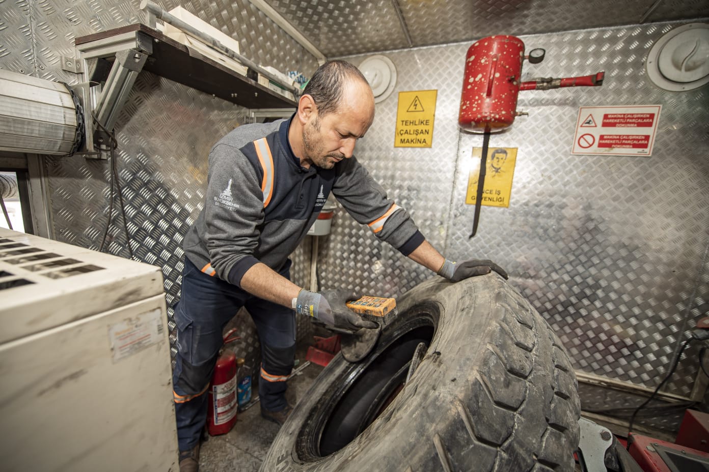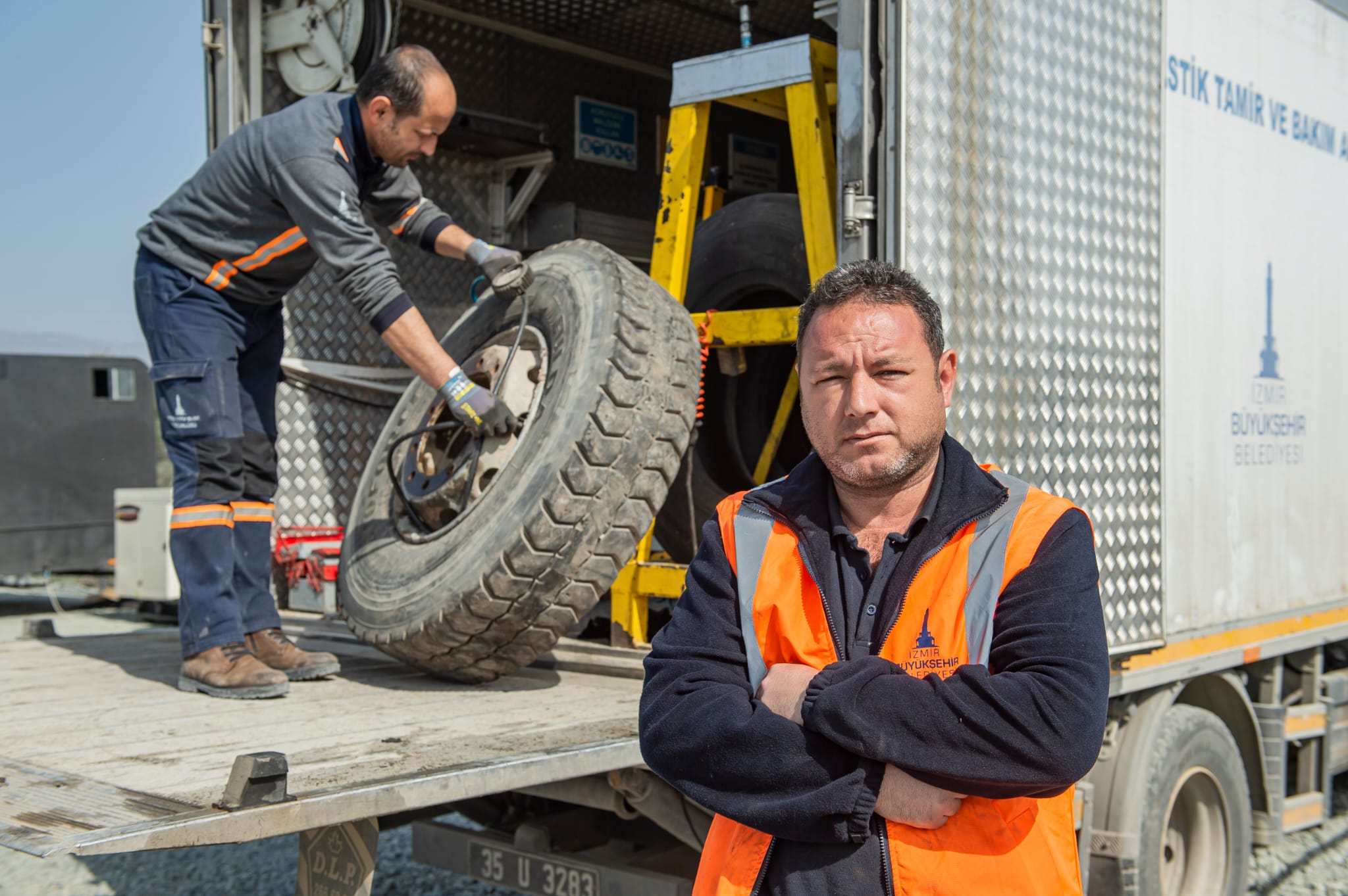 Günlük yaşamın tamamen değişime uğradığı deprem bölgesinde İzmir Büyükşehir Belediyesi ekipleri aksayan tüm hizmetleri yerine getirmek için farklı birimleriyle çalışmalarını sürdürüyor. Makine İkmal Bakım ve Onarım Dairesi ekipleri, zaman zaman yolda kalan vatandaşlara da teknik destek sunuyor.