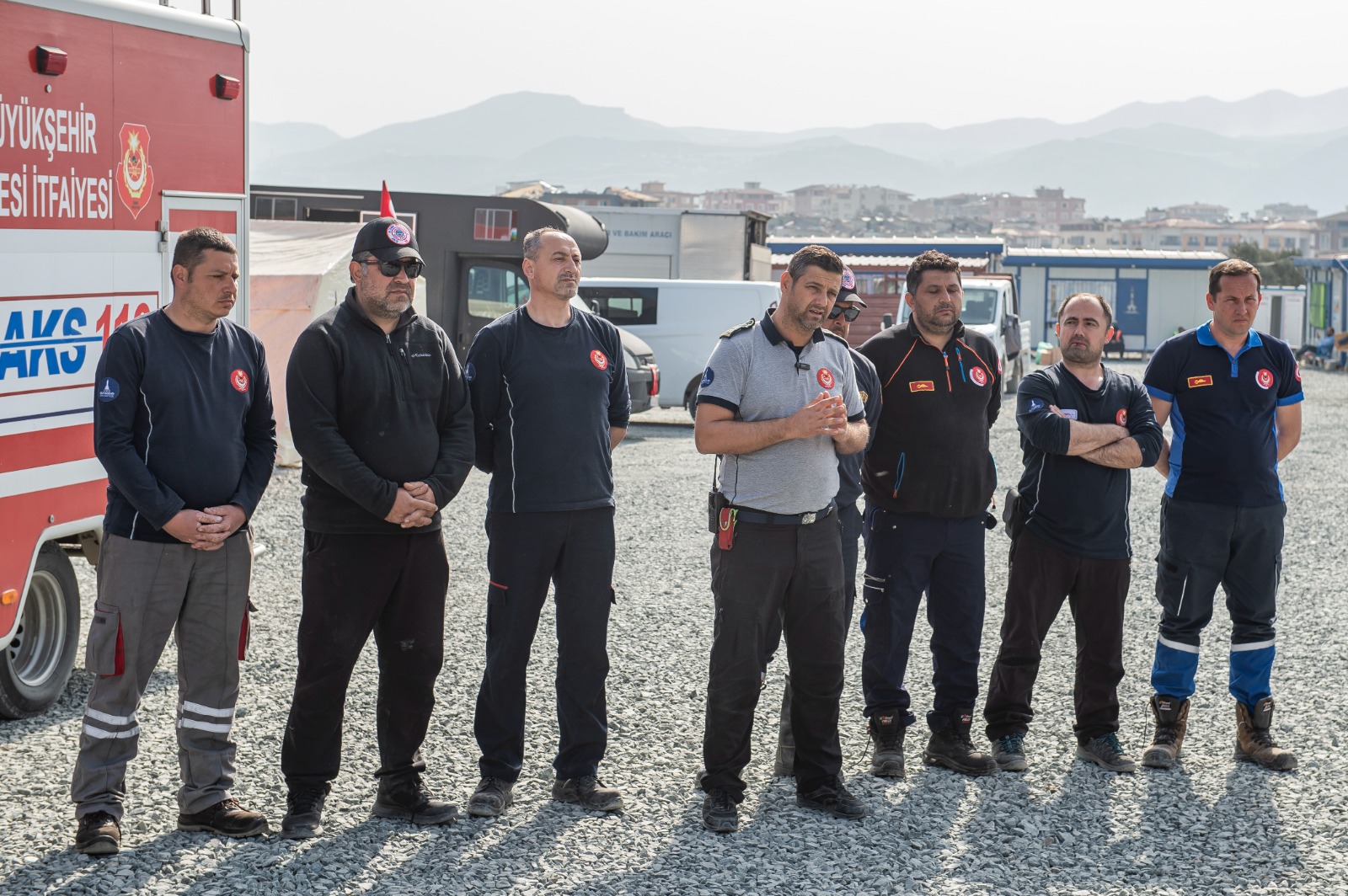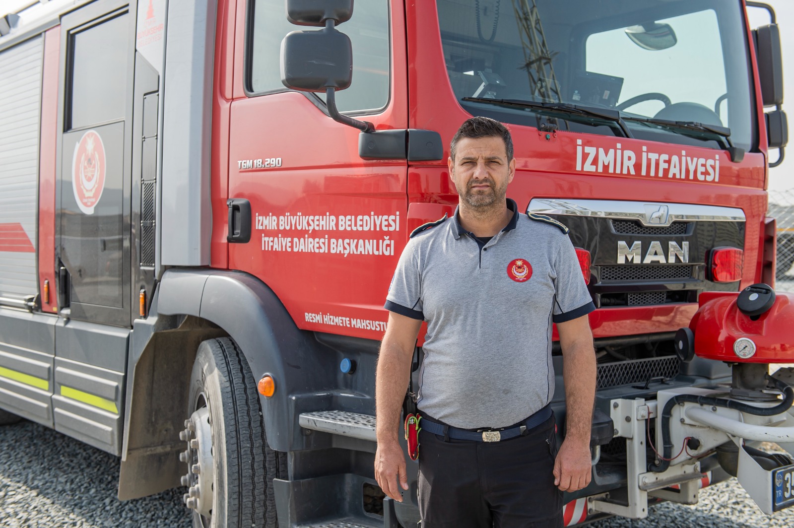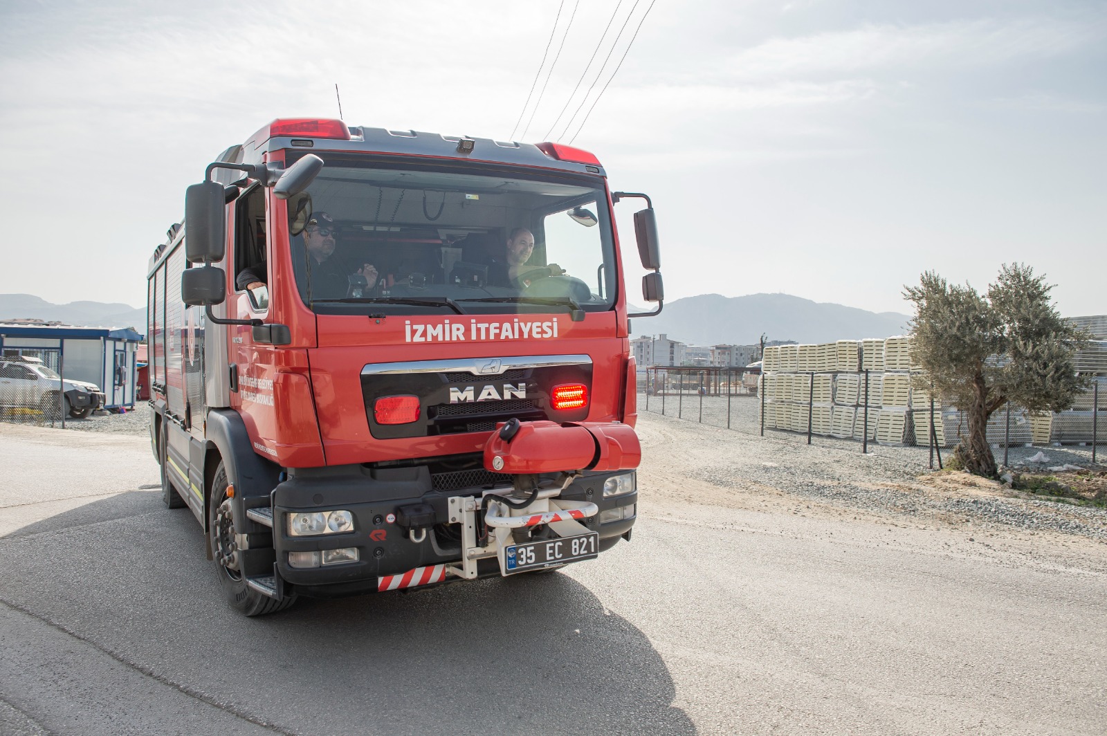 İtfaiye Dairesi Başkanlığı amirlerinden Mahir Yıldız, “İzmir Büyükşehir Belediyesi İtfaiyesi bölgedeki ilk ekiplerden bir tanesiydi. Arama kurtarma çalışmalarından sonra AFAD enkaz kaldırma işlemine geçti. Biz de bununla beraber kendi sahamıza çekilip vatandaşın barınma ihtiyaçları için yanında olmaya başladık, çadır kurulumu çalışmalarına katıldık. Çadır kentte arozöz ve AKS araçlarımızla olası tehlikeye karşı refakat hizmetine başladık. Aynı zamanda çadır kentlerde barınamayan veya tarım ve hayvancılıkla uğraşan bazı vatandaşlarımız bize başvurarak mülklerinin yanında ikamet etmek istediklerini belirttiler. Biz de çadırlarla onların olduğu mülklerde barınma sahaları oluşturduk. Vatandaşların derdine derman olma gayreti içine girdik. Bununla beraber bölgede çıkan yangınlara da müdahale ettik. Bölgenin en büyük narenciye soğuk hava deposunda çıkan yangını kısa sürede söndürdük” diye konuştu.
