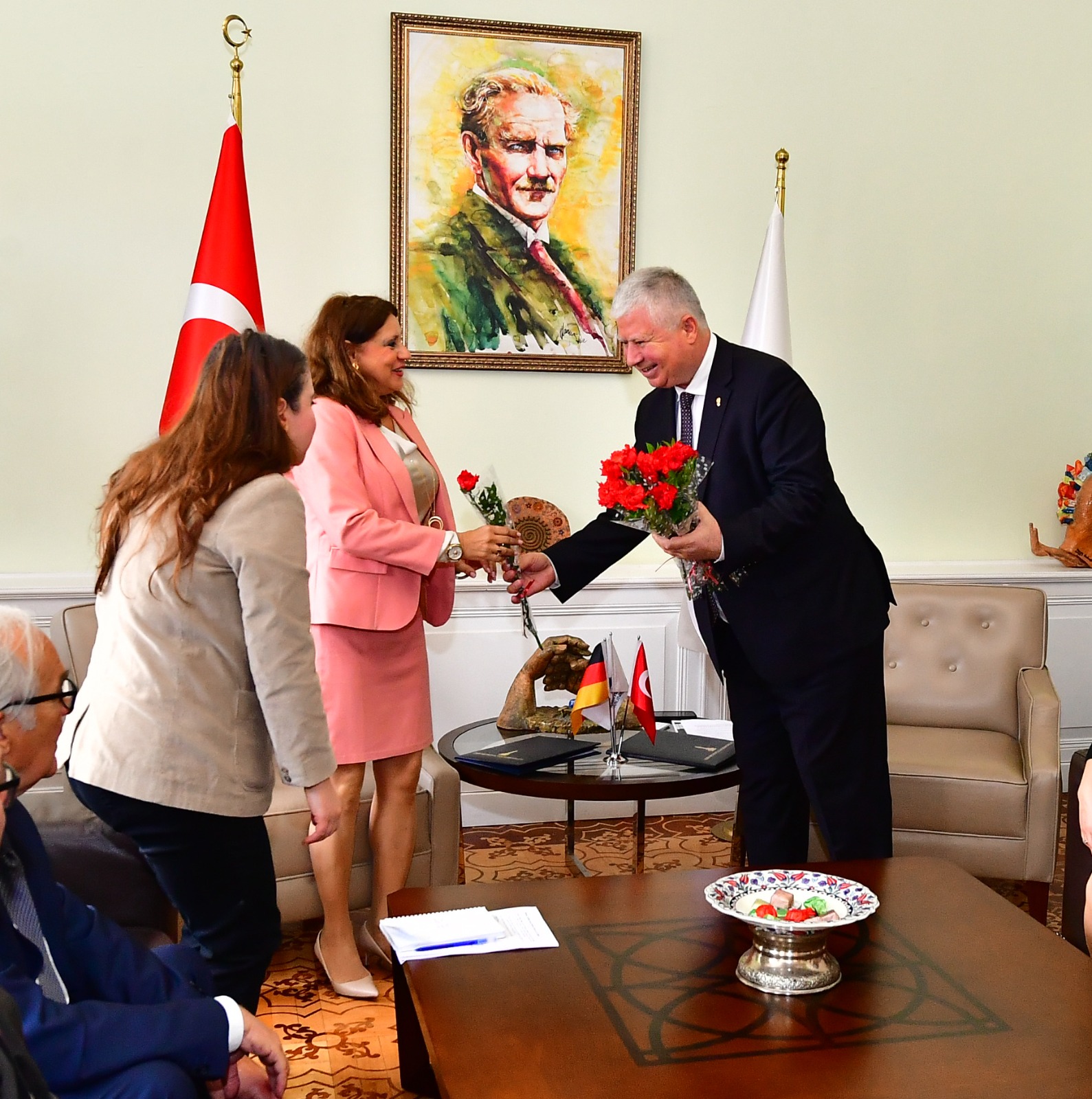 İzmir Büyükşehir Belediyesi Başkan Vekili Mustafa Özuslu, şehre gelen Almanya’nın Frankfurt Belediye Başkanı Dr. Eskandari Grünberg’i ağırladı. Ziyarette Frankfurt Belediyesi ile İzmir Büyükşehir Belediyesi arasında kültürel, sosyal ve ticari-ekonomik iş birliği olanaklarının gelişmesi amacıyla “İyi Niyet Beyanı” imzalandı.