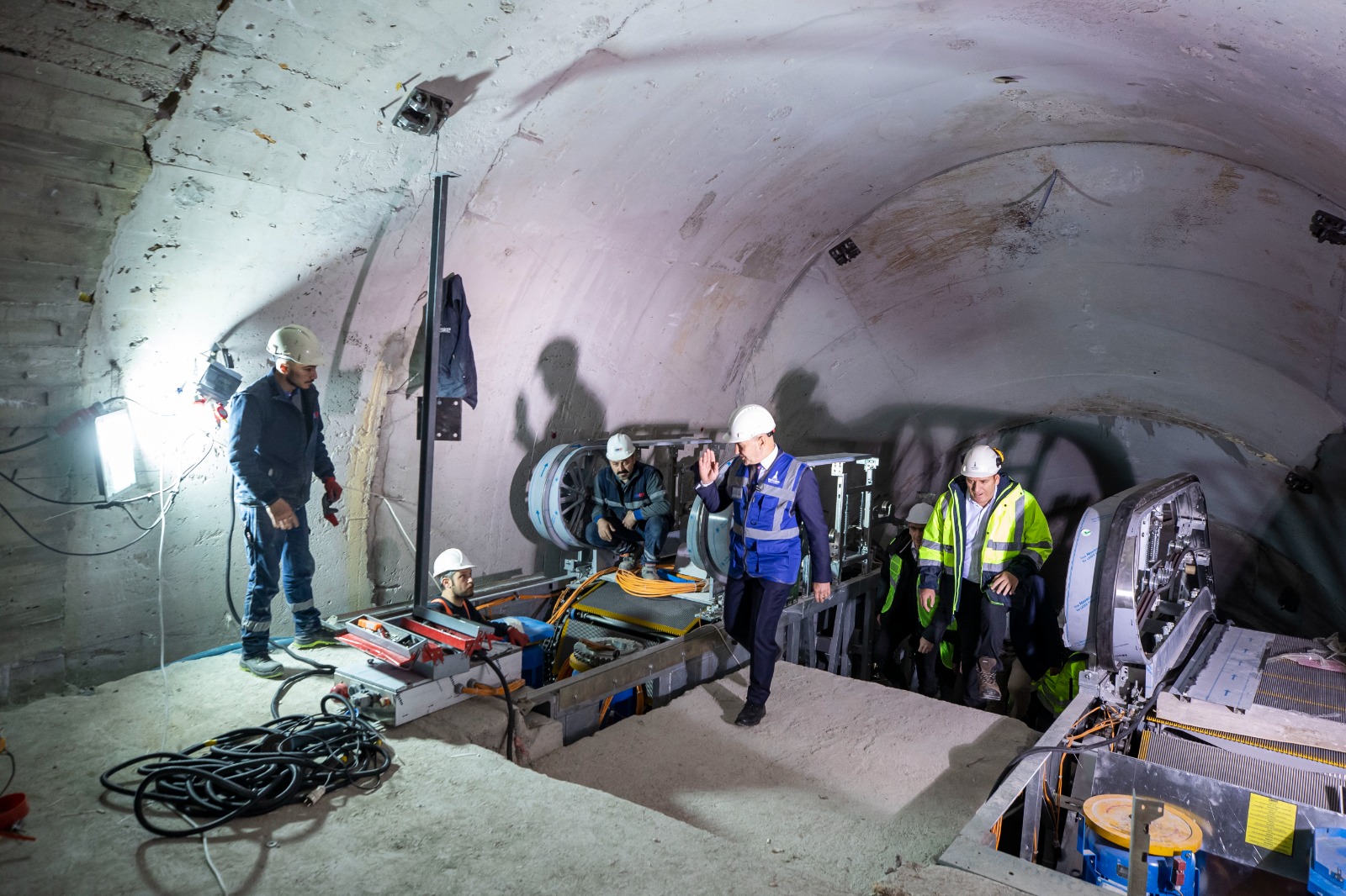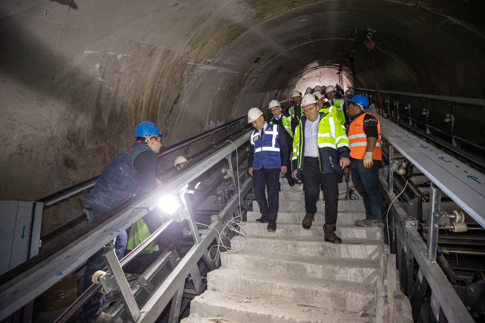 Narlıdere Metrosu’nda çalışmaların hızlı bir şekilde devam ettiğini söyleyen İzmir Büyükşehir Belediye Başkanı Tunç Soyer, “Ne depremler ne pandemi hiçbir şey durduramadı, yolumuzdan alıkoyamadı bizi. 1,5 milyar liraya yakın bir bütçeyle bu projeyi tamamlamış olacağız. Çok hızlı yürüyoruz. Deneme seferleri için hedef tarihimiz 15 Nisan. Vadettiğimiz gibi bu yıl içinde, Cumhuriyetin 100. yılında metro hattını tamamlayarak vatandaşlarımıza hediye edeceğiz. Şu anda yürüyen merdivenlerin montajı yapılıyor. İstasyonlarda son rötuşlar için arkadaşlarımız çalışıyor. Çok hummalı bir çalışma var. 700’ün üzerinde çalışan bu tarihe yetişmeye gayret ediyor. Bütün arkadaşlarıma minnettarım” dedi.