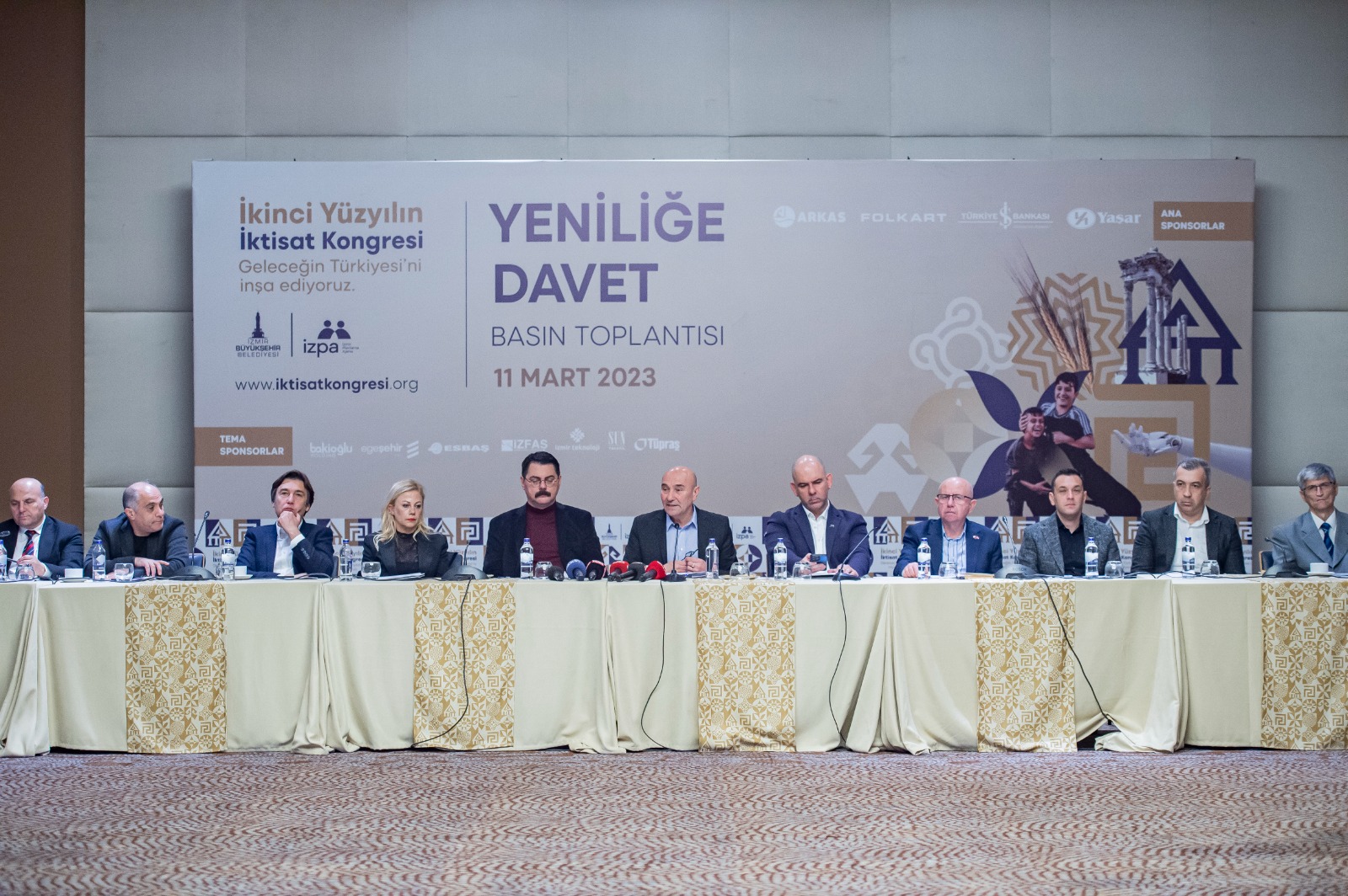İzmir Büyükşehir Belediye Başkanı Tunç Soyer, “Yeniliğe davet” sloganıyla 15-21 Mart 2023 tarihleri arasında düzenlenecek İkinci Yüzyılın İktisat Kongresi’nin programını basın mensuplarına tanıttı. Depremin ardından kongreye yeni buluşmanın eklendiğini söyleyen Başkan Soyer, “Biliyoruz ki önümüz aydınlık. Daha dirençli kentlerde, sağlıkla, huzurla bir arada yaşamanın önünü açacak iktisat politikalarını şekillendireceğiz” dedi. Başkan Soyer, kongreden çıkacak kararların her bir cümlesinin takipçisi olacaklarını da söyledi.