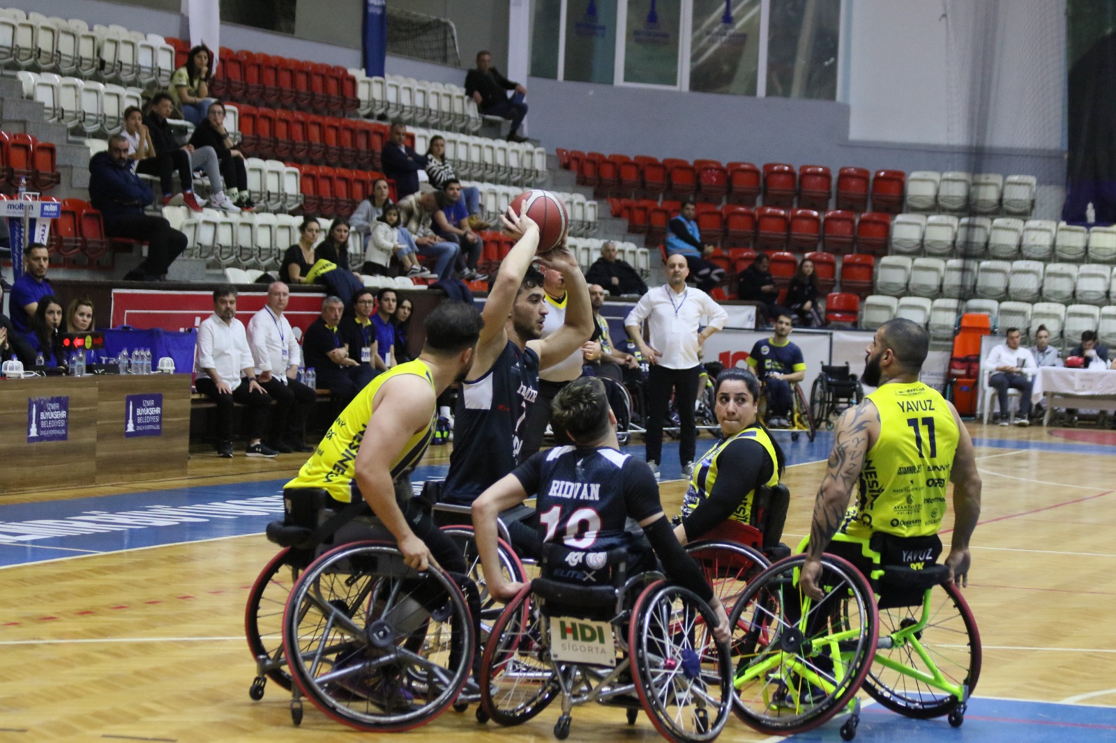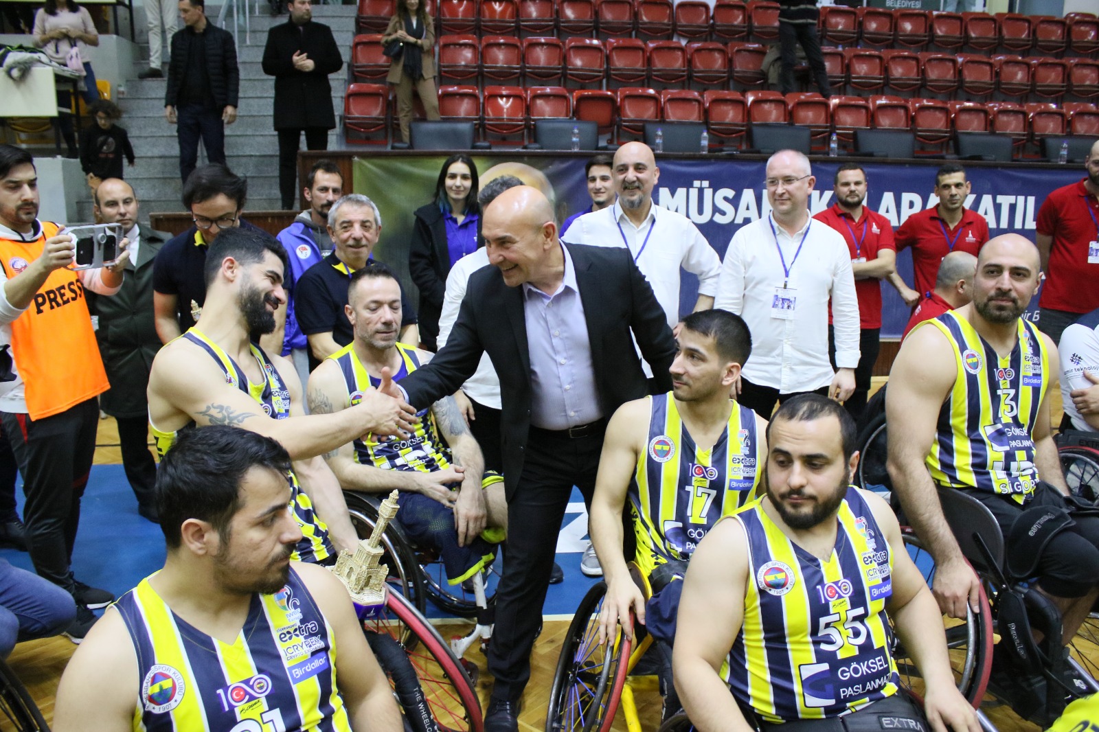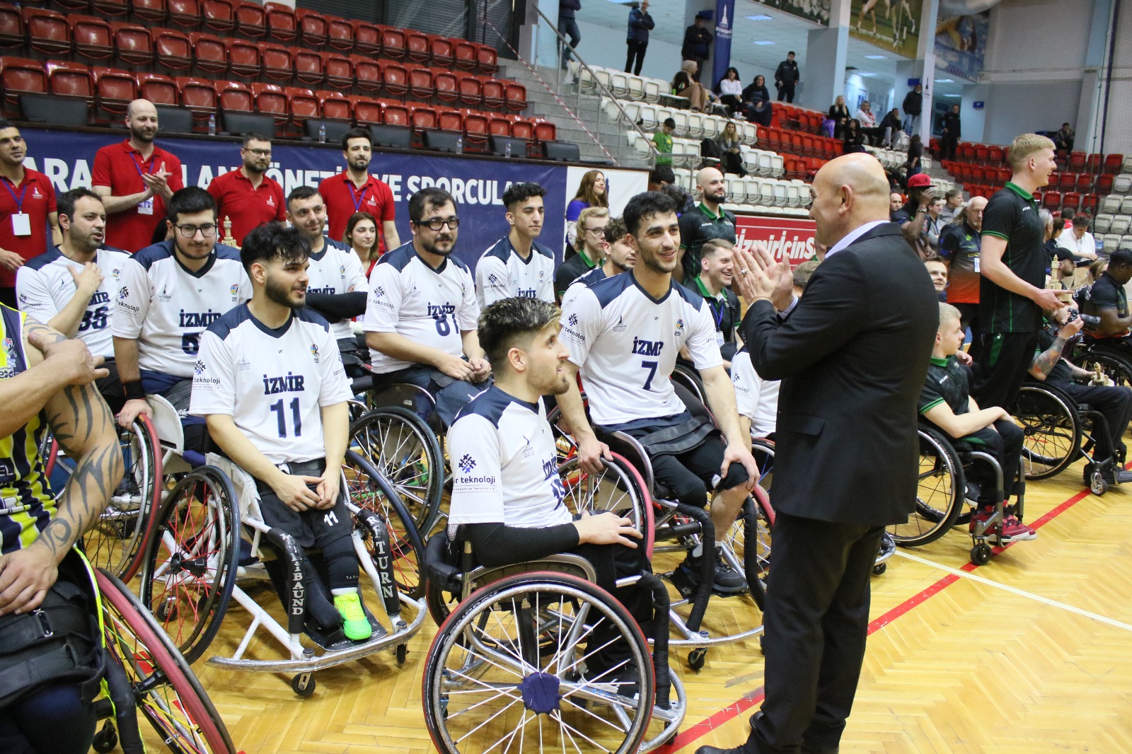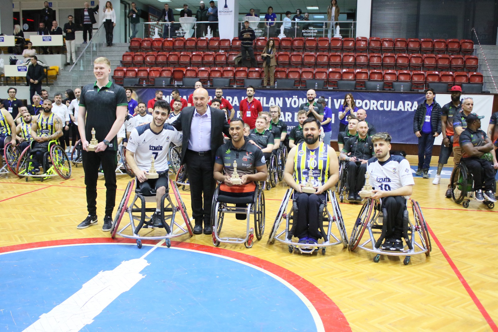 İzmir Büyükşehir Belediyesi Tekerlekli Sandalye Basketbol Takımı, IWBF EUROCUP 2 A Grubu final maçında Fenerbahçe Göksel Çelik'e 69-56 mağlup olarak organizasyonu ikinci sırada tamamladı. Yalova’da düzenlenecek EUROCUP-3 final grubuna katılmaya hak kazanan temsilcimizi İzmir Büyükşehir Belediye Başkanı Tunç Soyer de tribünden destekledi.