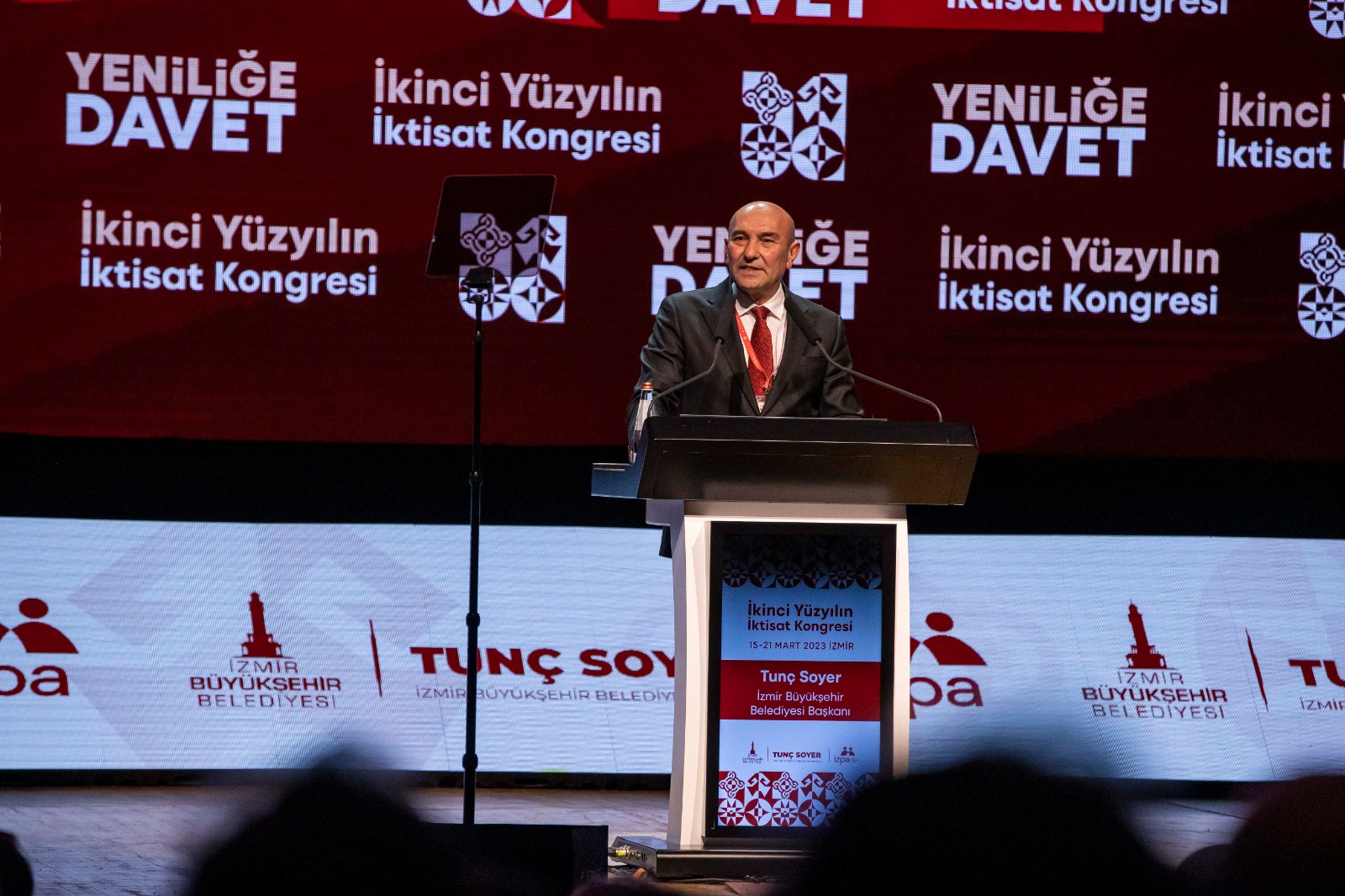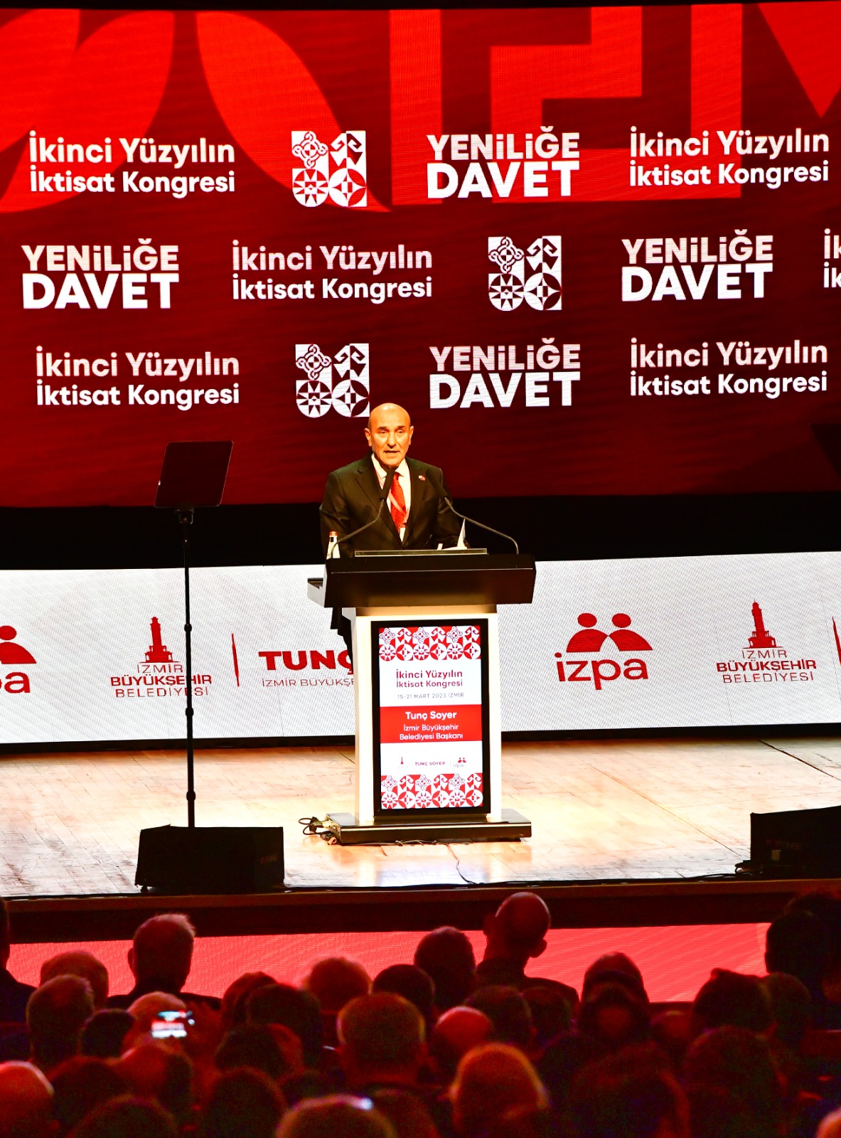 İzmir Büyükşehir Belediyesi tarafından “Yeniliğe Davet” sloganıyla tüm Türkiye’yi geleceği inşa etmeye çağıran İkinci Yüzyılın İktisat Kongresi’nin açılışını Başkan Tunç Soyer yaptı. Adil, özgür, müreffeh ve demokratik bir Türkiye’nin yeniden kurulduğunu ifade eden Başkan Soyer, “Bu enkazın altından kalkarak yine o muhteşem ülkeyi kuracağız. Başardık, çok çalışacağız, yeniden başaracağız” dedi.