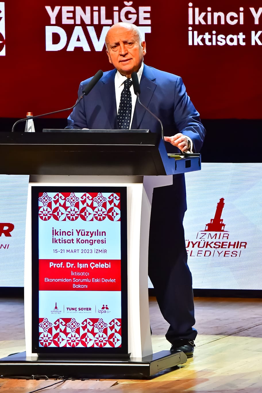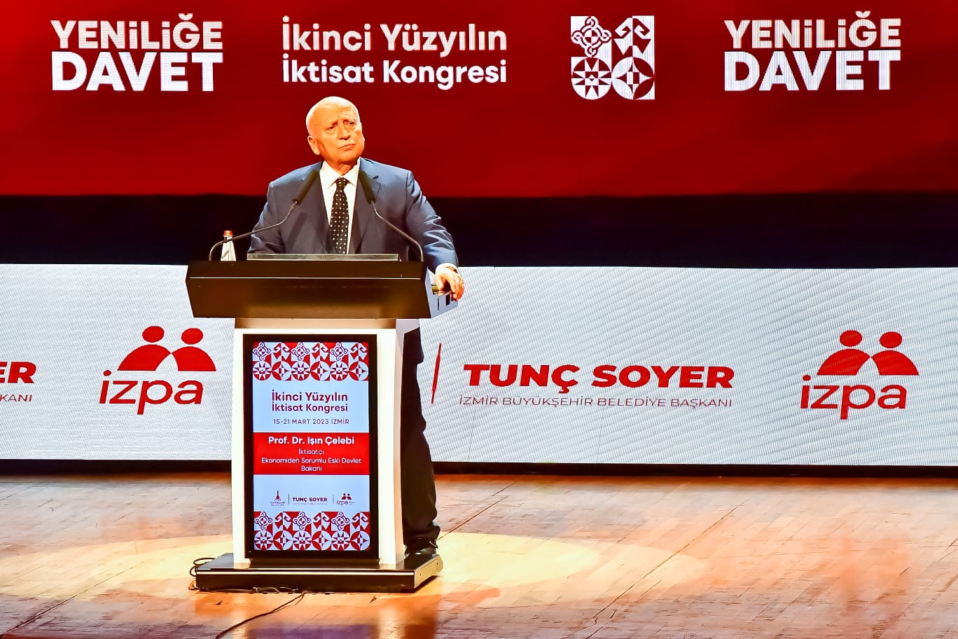 İkinci Yüzyılın İktisat Kongresi’nin ilk gün oturumları kapsamında Ekonomiden Sorumlu Eski Devlet Bakanı ve iktisatçı Prof. Dr. Işın Çelebi, Türkiye’nin 6 Şubat depremlerinin ardından uyguladığı politikalardan söz etti. Günümüz Türkiyesi’ni 100 yıl öncesindeki ülkenin durumuna benzeten Işın Çelebi, “Bu kongrenin 1923’teki İktisat Kongresi’yle benzerliği beni çok etkiledi. Atatürk yola çıktığında memlekette her şey harap olmuştu. Bugün de 6 Şubat’tan sonra Türkiye çok ağır bir yıkım yaşandı. Atatürk 1923’ten sonra cumhuriyetin ilanını gerçekleştiriyor. Bugün de Tunç Soyer’in başkanlığında düzenlenen bu İktisat Kongresi, 2023 sonrası Türkiyesi’nin iktisat politikalarını, doğaya ve sürdürülebilir kalkınmaya sahip çıkan yeni bir başlangıcı bize işaret etti” dedi.