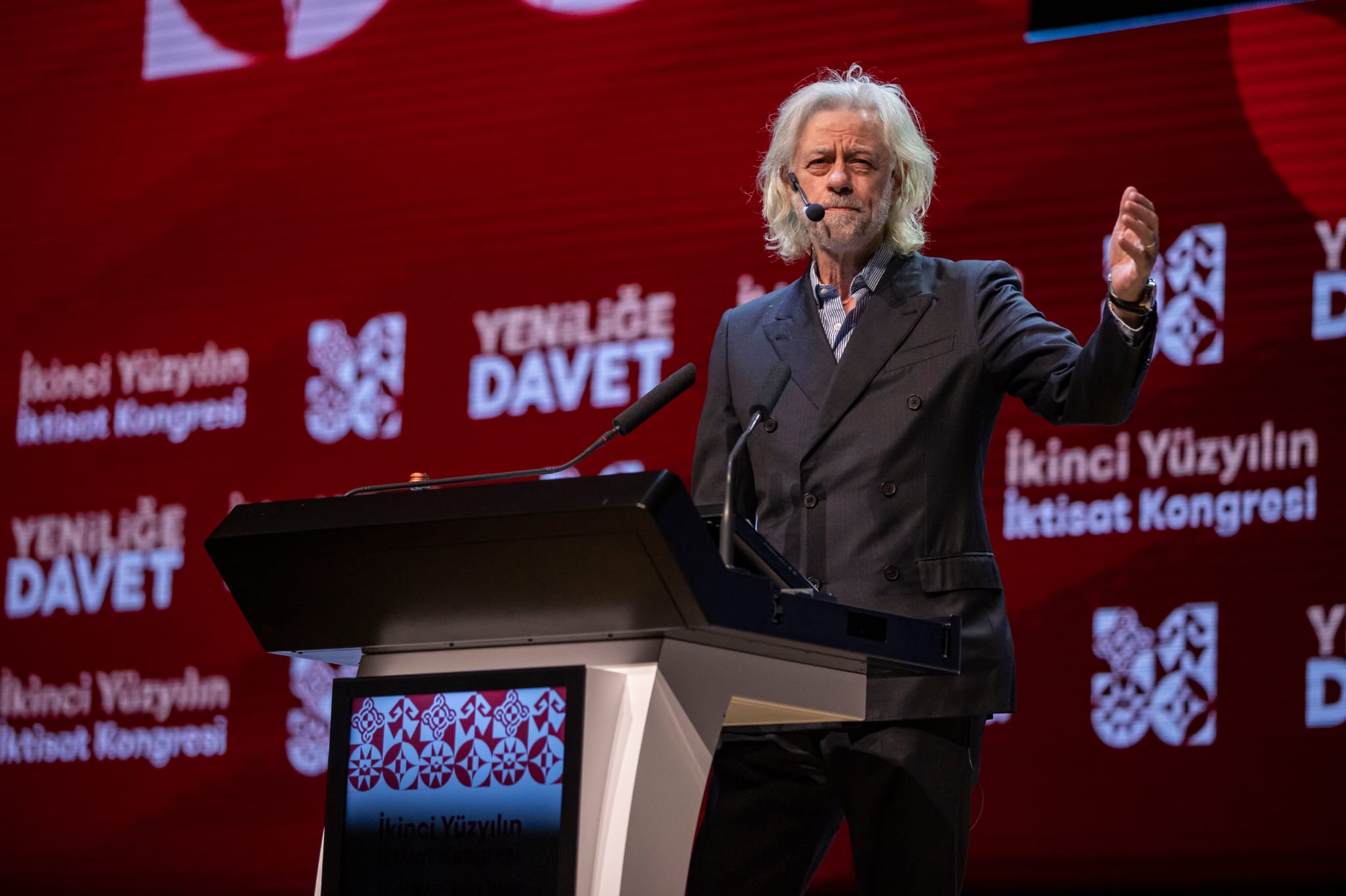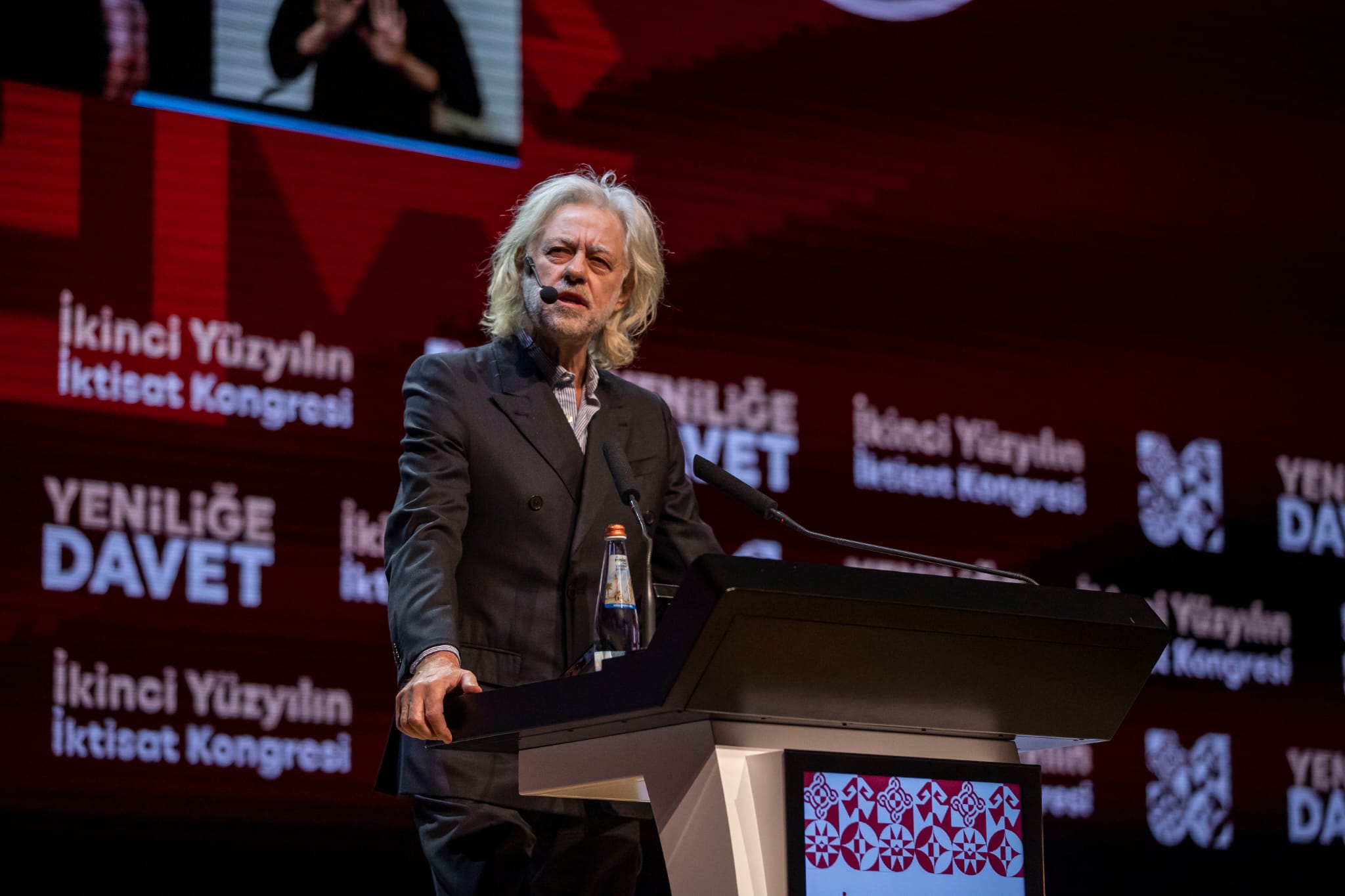 Geldof, “Biz hepimiz, eski beklentilerin artık geçerli olmadığı bir dönemde yaşıyoruz. Artık bilinenler üzerinden politika üretilemiyor. Değişim her zaman kaygıyı artırır. Bu kongre de değişimi hedefliyor, farklı bir arayışla gelişim istiyor. Burada yapılanlar, Türkiye’yi yenilemek için bir çalışmadır. Türkiye’nin avantajları ve fırsatları çok. Bu avantajlar bizde yok. Daha iyileştirilmiş avantajlar var. Peki, yeni dünyayı nasıl bulacağız? Eğer tek bir insan kontrolü varsa ya da yasal düzenlemeleri tek kişi yapıyorsa bu zor olabilir” ifadelerini kullandı.