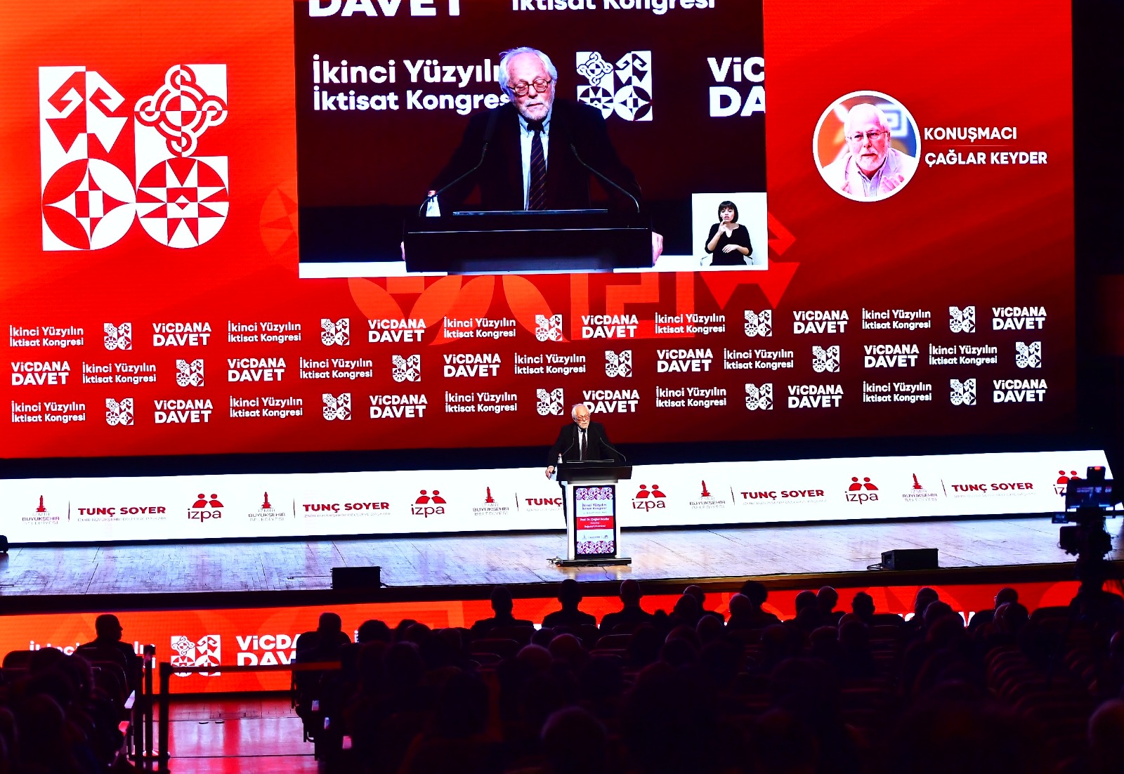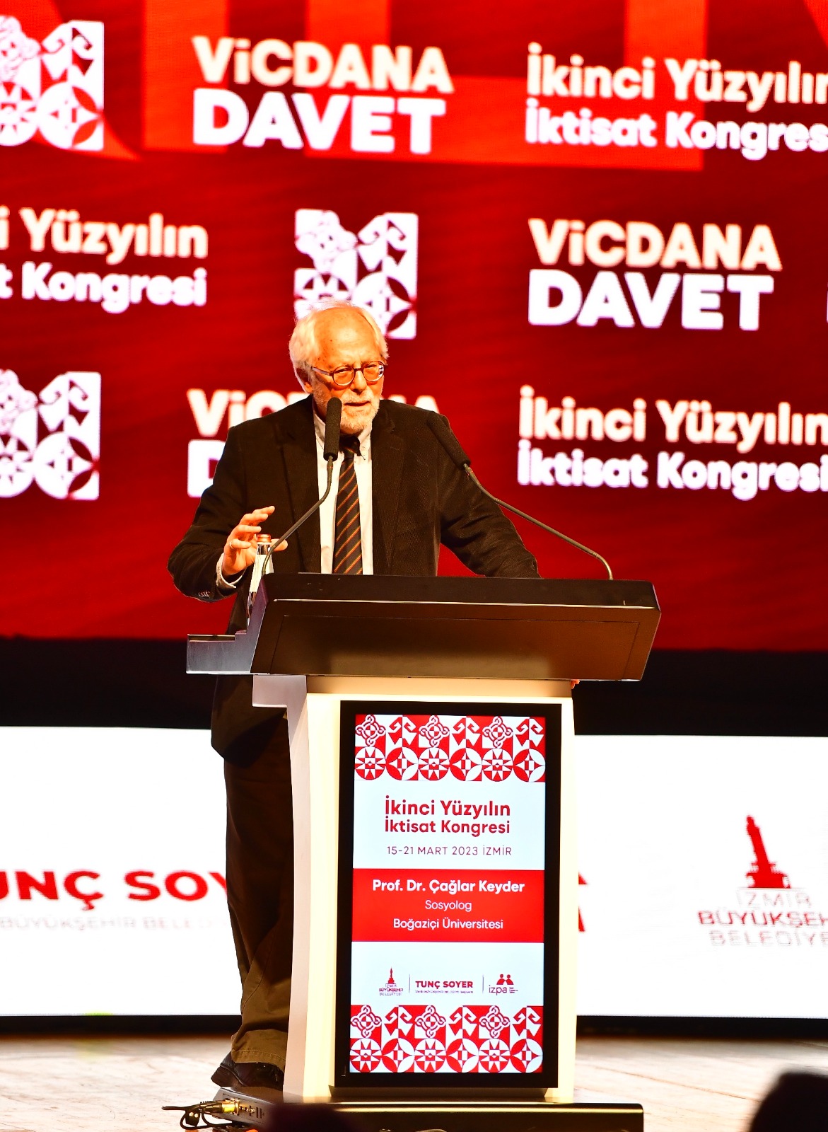 Boğaziçi Üniversitesi Sosyoloji Bölümü öğretim üyesi Prof. Dr. Çağlar Keyder, İkinci Yüzyılın İktisat Kongresi'nin ikinci gününde “Değişen Dünyada İktisat Politikası” başlıklı bir sunum yaptı. Prof. Dr. Çağlar Keyder, Türkiye'nin şu anda olduğu yerin çok önemli olduğunu vurgulayarak “Yeni bir kulvara geçmek çok da anormal olmayacak, çünkü bütün dünya yeni bir kulvara geçmek durumunda gibi görünüyor. O yeni kulvar da 1980'lerde başlayan neoliberal düzenin hedef olarak aldığı, ortadan kaldırmaya çalıştığı devletin önceliğiydi. Yani sermayenin bir seçimi diye düşünüyoruz neoliberalizmi. Fakat neoliberalizm devlete karşı bir ideolojiydi” dedi.