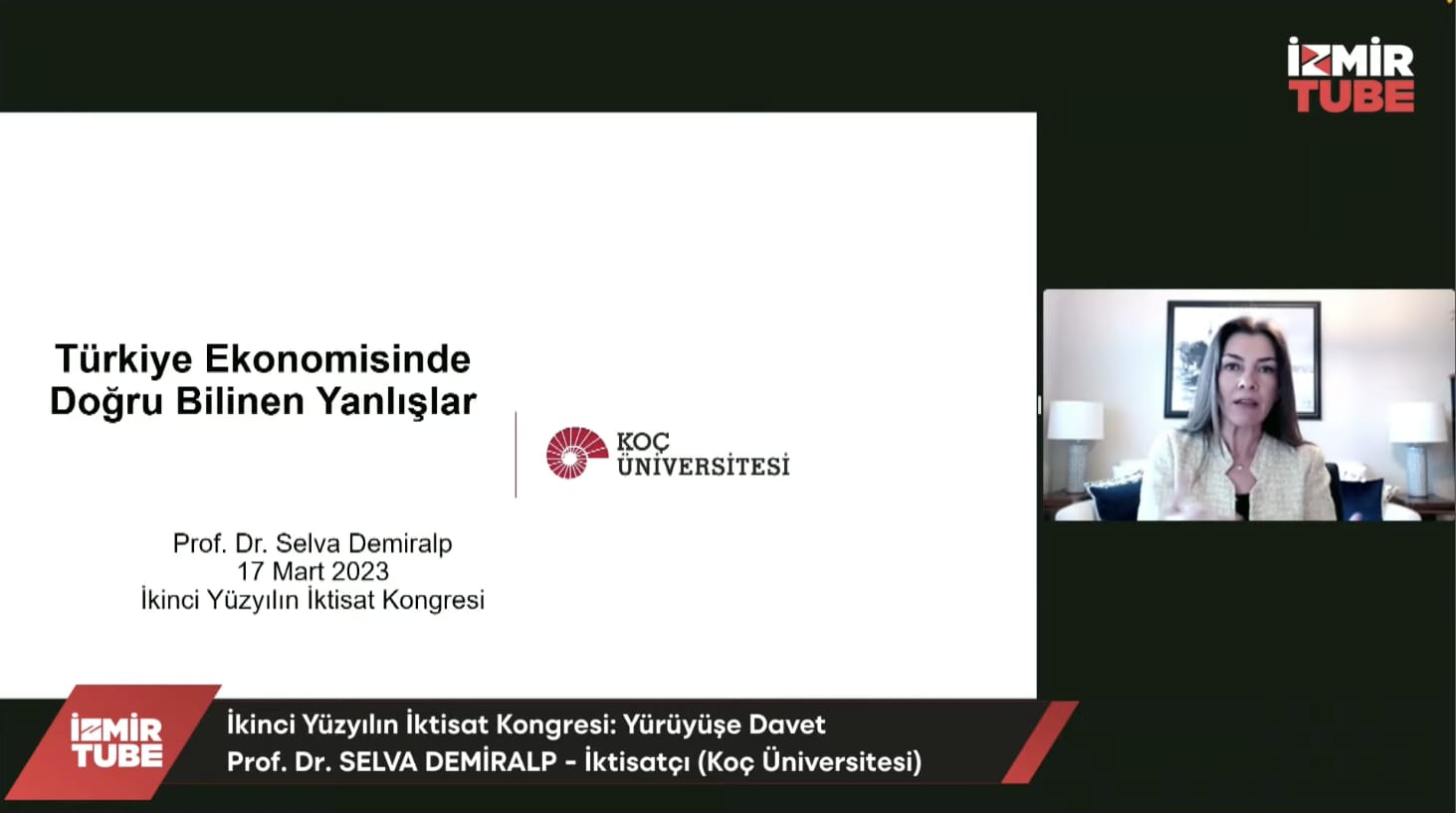 İkinci Yüzyılın İktisat Kongresi kapsamında Koç Üniversitesi öğretim üyesi iktisatçı Prof. Dr. Selva Demiralp, çevrim içi olarak “Türkiye Ekonomisinde Doğru Bilinen Yanlışlar” adlı sunum yaptı. Selva Demiralp, Türkiye ekonomisinin bugününde doğru olarak bilinen veya doğru olduğuna yönelik kamuoyu yaratılmaya çalışılan enflasyon rakamları, ekonomik büyüme rakamları, faiz politikaları, üretim ve enflasyon dengesi, cari açık sorunu, enflasyonla mücadele politikası gibi konuları bilimsel bakış açısı ve verilerle açıkladı.