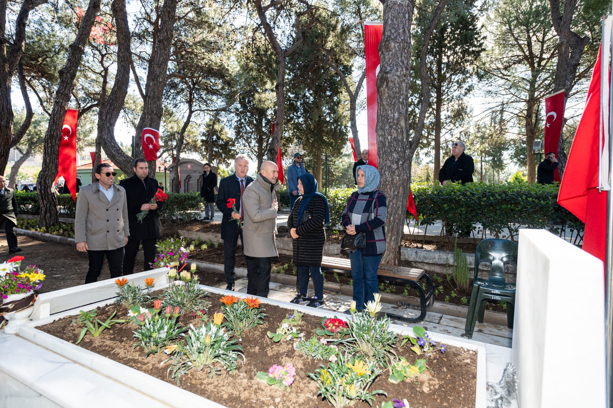 Törende şehitler için dua okunmasının ardından Kadifekale Şehitliği'ndeki kabirlere karanfil bırakıldı.
