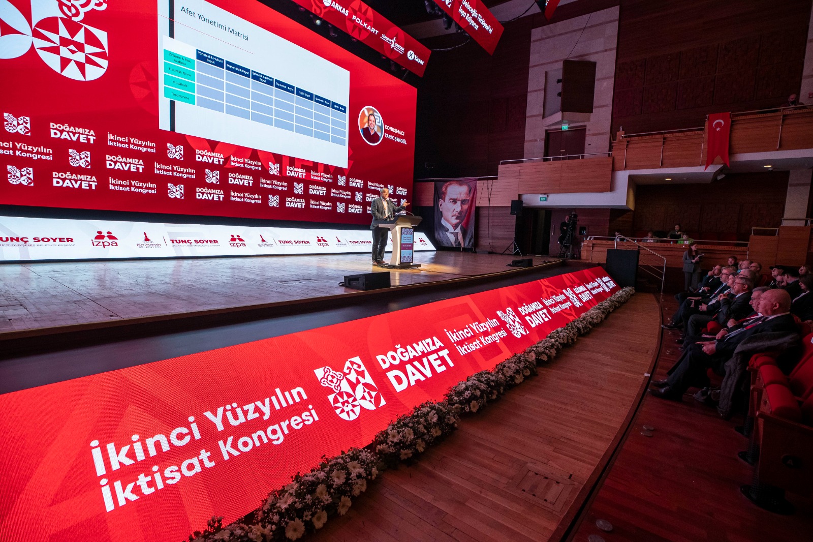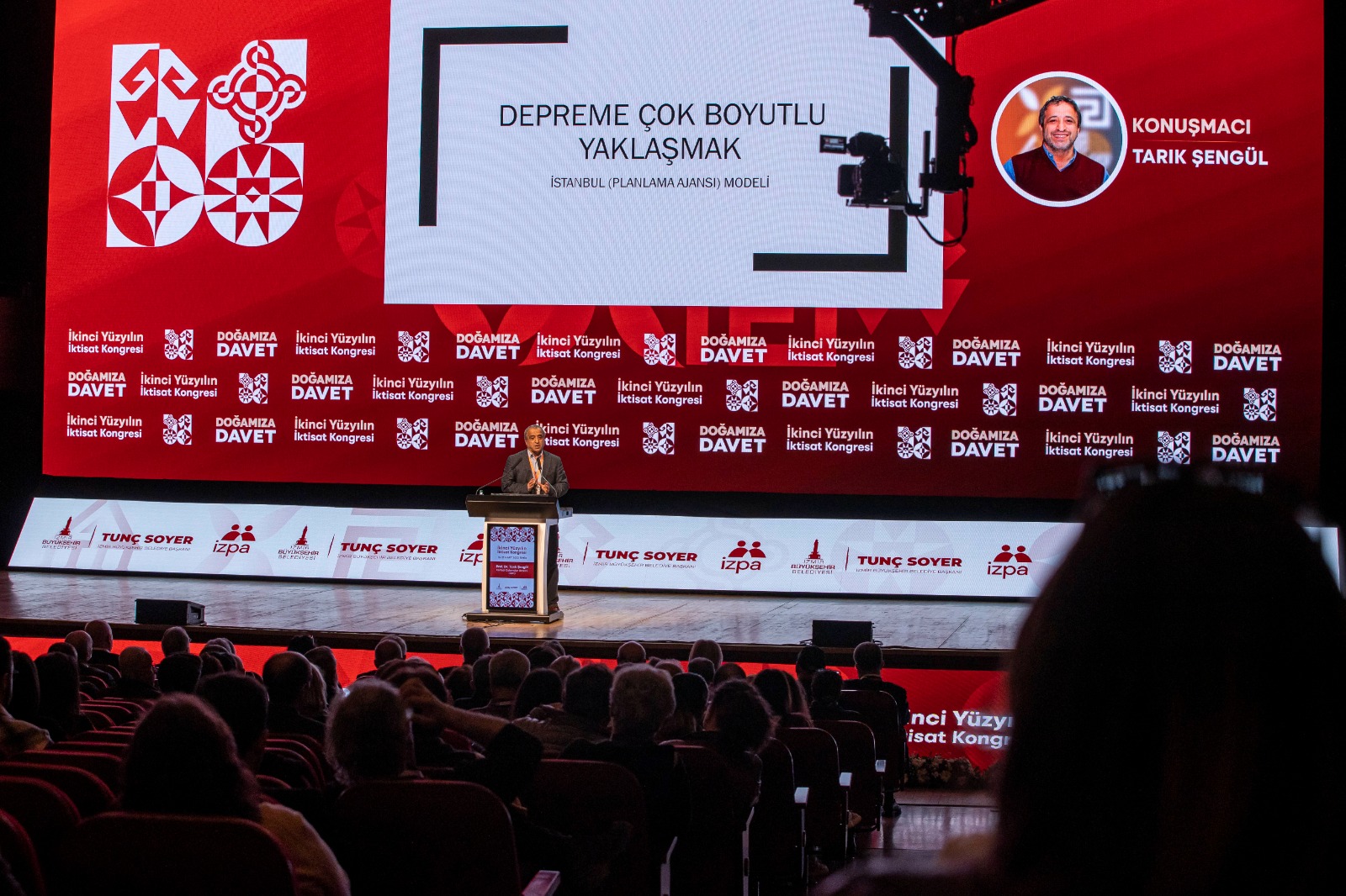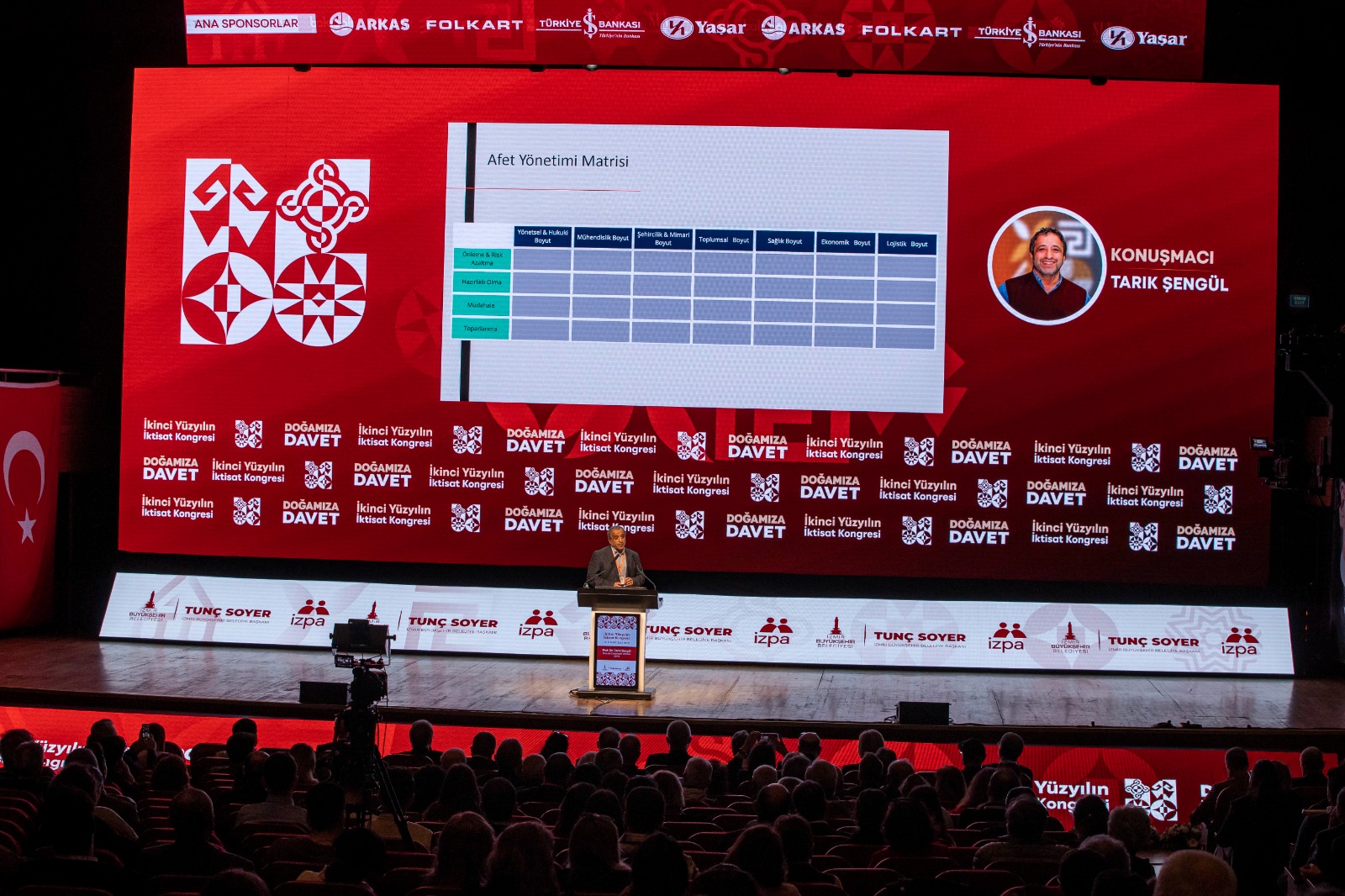 İkinci Yüzyılın İktisat Kongresi’nin, “Doğamıza Davet” temaslı dördüncü gün oturumları 18 Mart Şehitleri Anma Günü ve Çanakkale Deniz Zaferi nedeniyle saygı duruşu ve İstiklal Marşı ile başladı. Gazeteci Özlem Gürses’in sunumunu yaptığı oturumunun ilk konuşmacısı ODTÜ İktisadi ve İdari Bilimler Fakültesi Siyaset Bilimi ve Kamu Yönetimi Bölüm Başkanı Prof. Dr. Tarık Şengül oldu. İstanbul’da başlattıkları depreme dayanıklı kentler oluşturmaya yönelik yaklaşımlardan söz eden Prof. Dr. Tarık Şengül, “Belirli aralıklarla afetleri yaşıyoruz. İstedik ki 1999 depremi bir olay olsun. Aradan geçen süreye baktığımızda 1999 depremi bir olay olmadı. Kentleri nasıl kurmalıyız diye yine tartıştık, düşündük. Yaşam tekrar eskiye döndü. Rant projelerinin altına imzalar atıldı ve 6 Şubat depremine zemin hazırladık. Bugün bizlere düşen en önemli görev bu son yaşadığımız depremi olaya çevirmek. Karşımızda büyük bir rant meselesi var. Bu sadece siyasal mesele değil. Alışkanlık haline gelmiş, yönetim biçimi olmuştur. Buna dur diyemiyorsak bize yazıklar olsun. Bunu geçiştiremeyiz. Artık yüzleşmemiz lazım. Geleceğe yönelik farklı kentler planlamamız gerek” dedi.