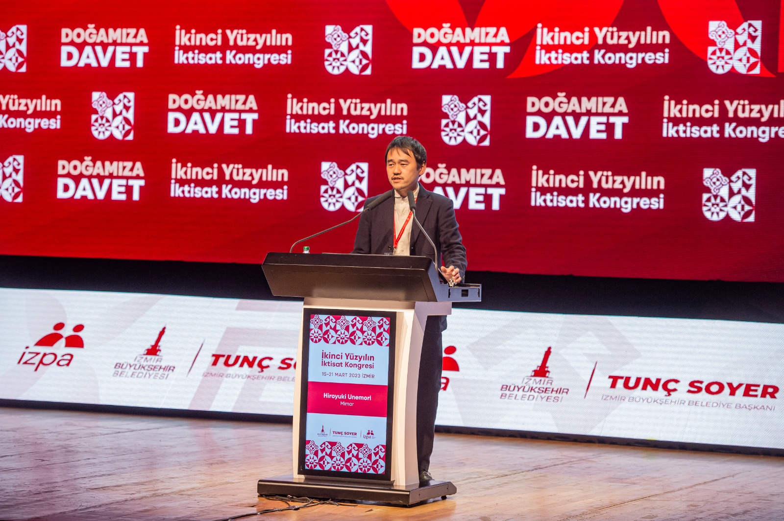 İkinci Yüzyılın İktisat Kongresi kapsamında Japon mimar Hiroyuki Unemori, “Geleceğin Dünyasında Dirençli Şehirler” başlığıyla sunum yaptı. Hiroyuki Unemori, “Türkiye’ye ilk defa geldim. İstanbul ve İzmir’i gördüm. Bu iki ilde de doğu ve batı kültürü çok güzel bir uyum yakalamış. Şehirleri yüz yıl içinde düşünmemiz gerekiyor. İlerde ne gibi sorunlar yaşanır, bunları iyi değerlendirmek gerekiyor” diye konuştu.