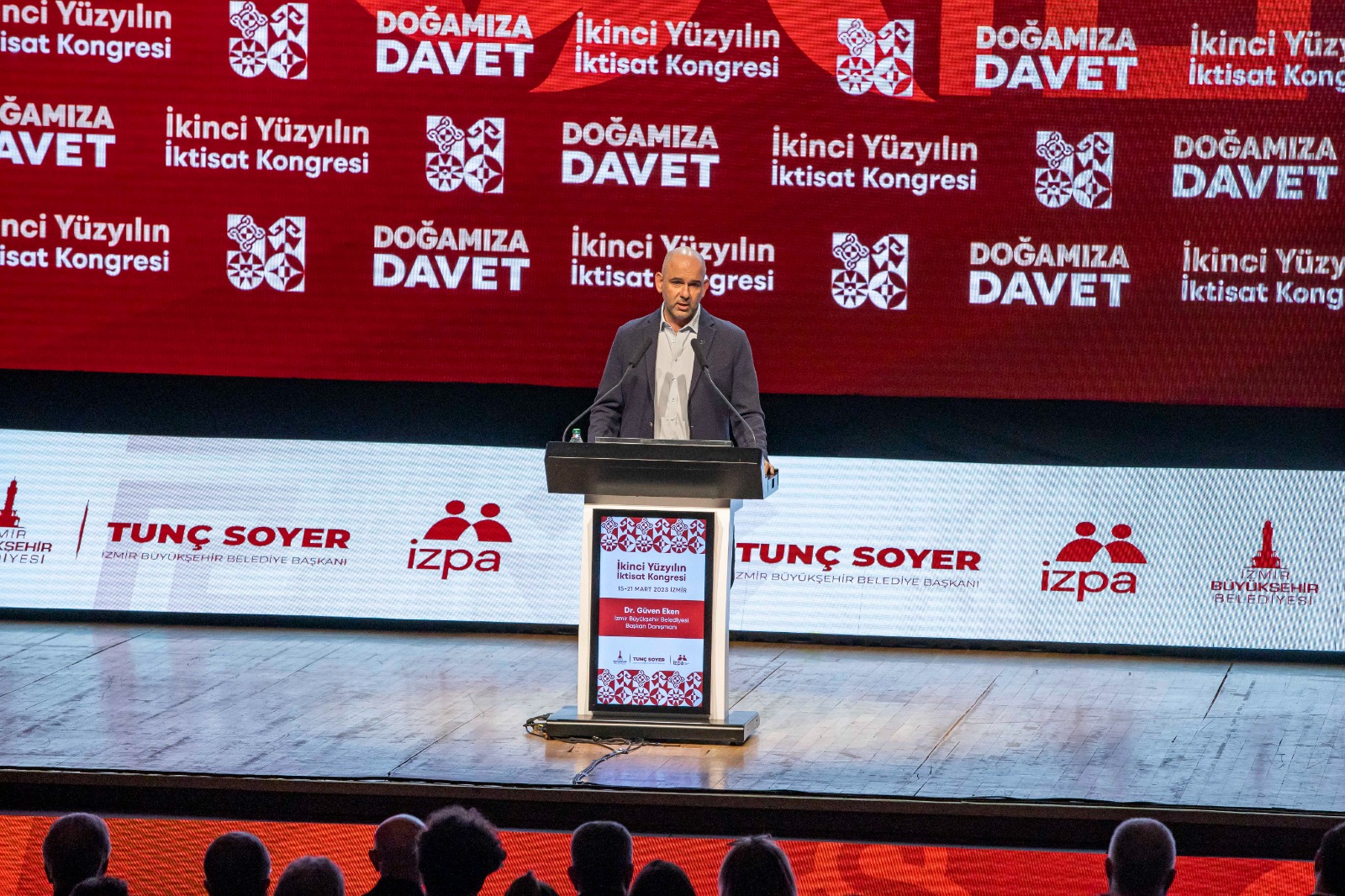 İkinci Yüzyılın İktisat Kongresi’nin dördüncü gününde konuşan İzmir Büyükşehir Belediyesi Başkan Danışmanı Dr. Güven Eken, “Sevgi, dünyanın neresine giderseniz gidin, hangi milletten olursanız olun çözümün nerede olduğunu gösteriyor. Sevgi olmadan dünyada hiçbir şeyi değiştiremeyiz. Bir şehri aşkla yöneteceğim diyen ve 50 yılda bir gelen bir lider İzmir’i yönetiyor” şeklinde konuştu.