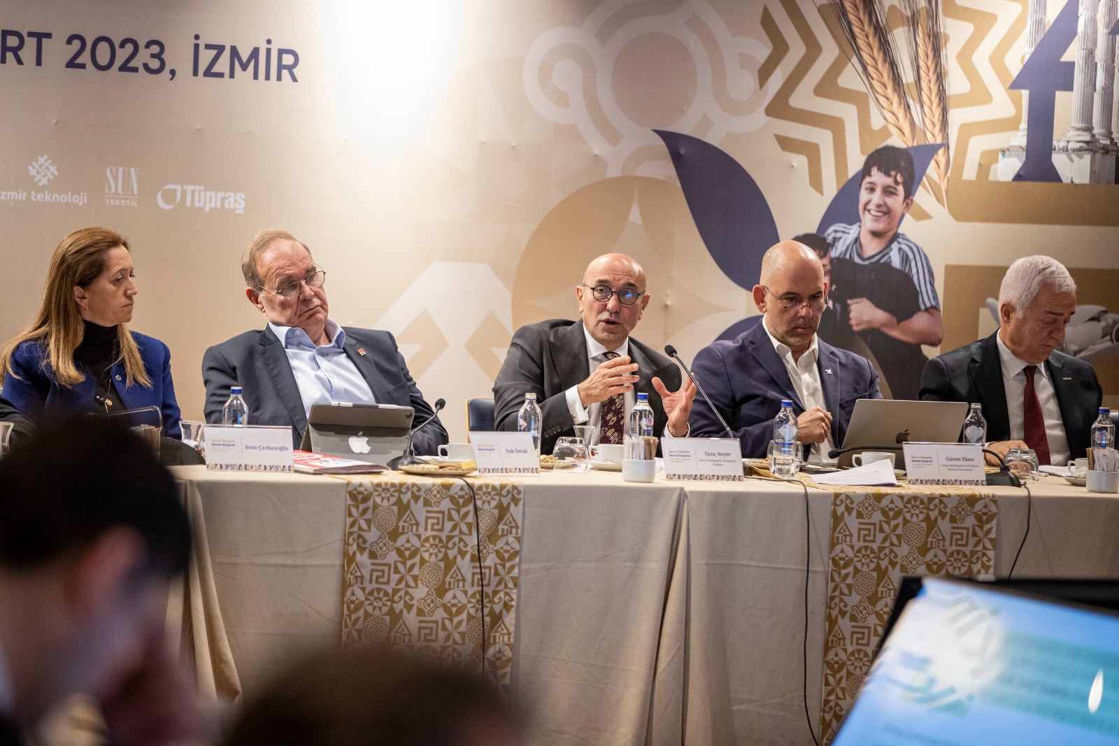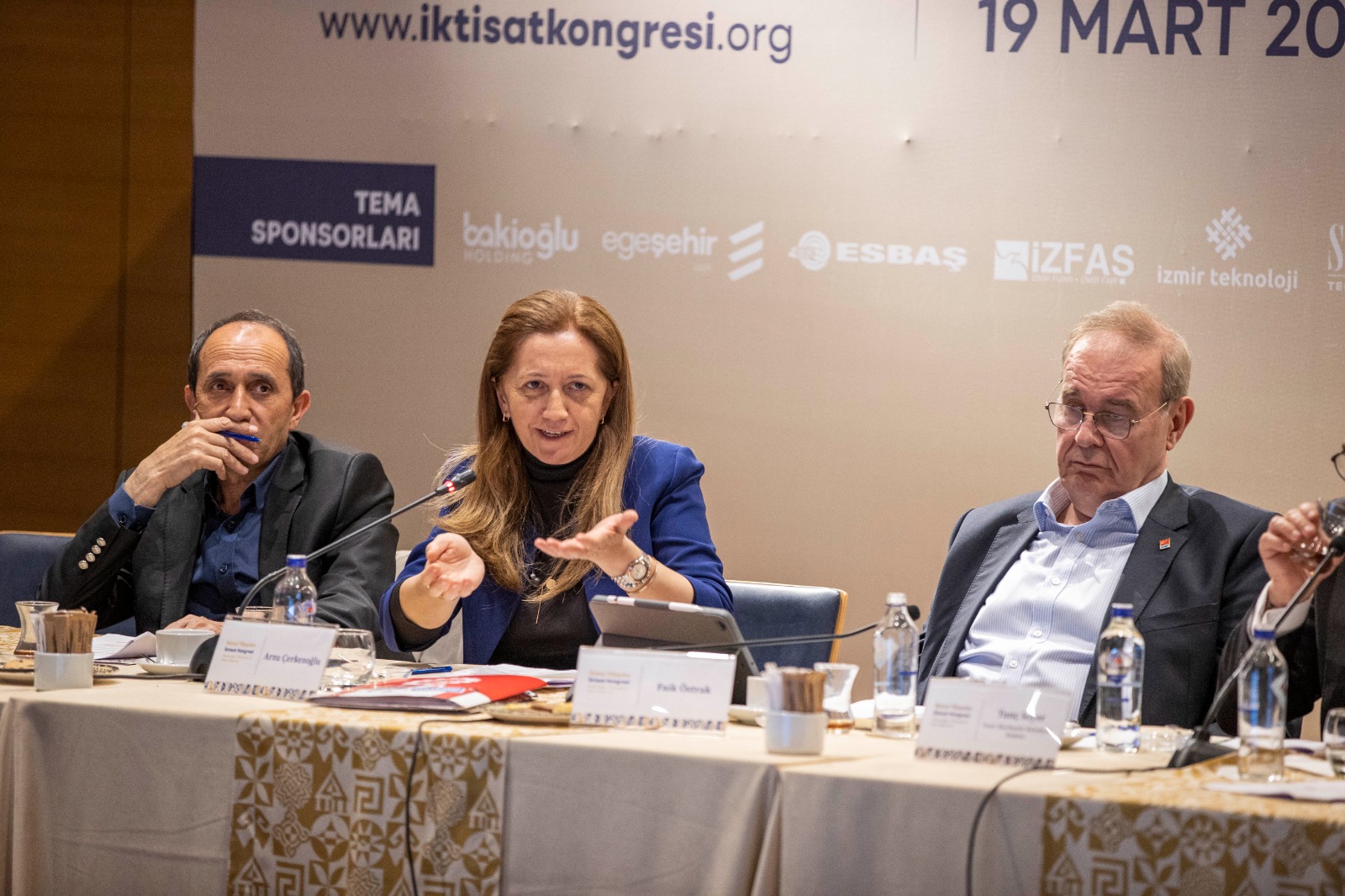 “Yeniliğe Davet” başlığıyla yapılan ve geleceği inşa etmeye çağıran İkinci Yüzyılın İktisat Kongresi beşinci gününde. Üçüncü ve son kez toplanan Yüksek İstişare Kurulu, 21 Mart’ta tüm Türkiye ve dünyaya duyurulacak sonuç bildirgesinin giriş metnini ve paydaş gruplarından gelen değişiklik önerilerini değerlendirdi. Toplantı sırasında basın açıklaması yapan İzmir Büyükşehir Belediye Başkanı Tunç Soyer, “Paydaş ve uzmanlarımızın yaptığı çalışmalar tamamlandı. O tamamlanan çalışmalar ışığında Yüksek İstişare Kurulumuz son revizyonları, rötuşları yapmak üzere bir araya geldi. Kurulumuz, bütüncül bir perspektif ortaya koymaya gayret ediyor. Gözden kaçan, eksik kalan hususlar varsa onları tamamlamaya gayret ediyor. Çiftçi, işçi ve sanayici-tüccar-esnafların aldığı ilke ve kararların önünde, bu alınan kararların çerçevesini ortaya koyan giriş bölümü yer alacak. Şu anda burada onun son hâli için çalışılıyor. Yarın da varsa çiftçilerin, işçilerin, sanayici-tüccar-esnafların aralarında uzlaşamadıkları hususlar üzerine çalışılacak. 21 Mart’ta ise son hâline gelen metinleri, tüm delegelerin hazır bulunacağı bir ortamda oylarına sunacağız. Oylamayla da son neticeyi almış olacağız” dedi.