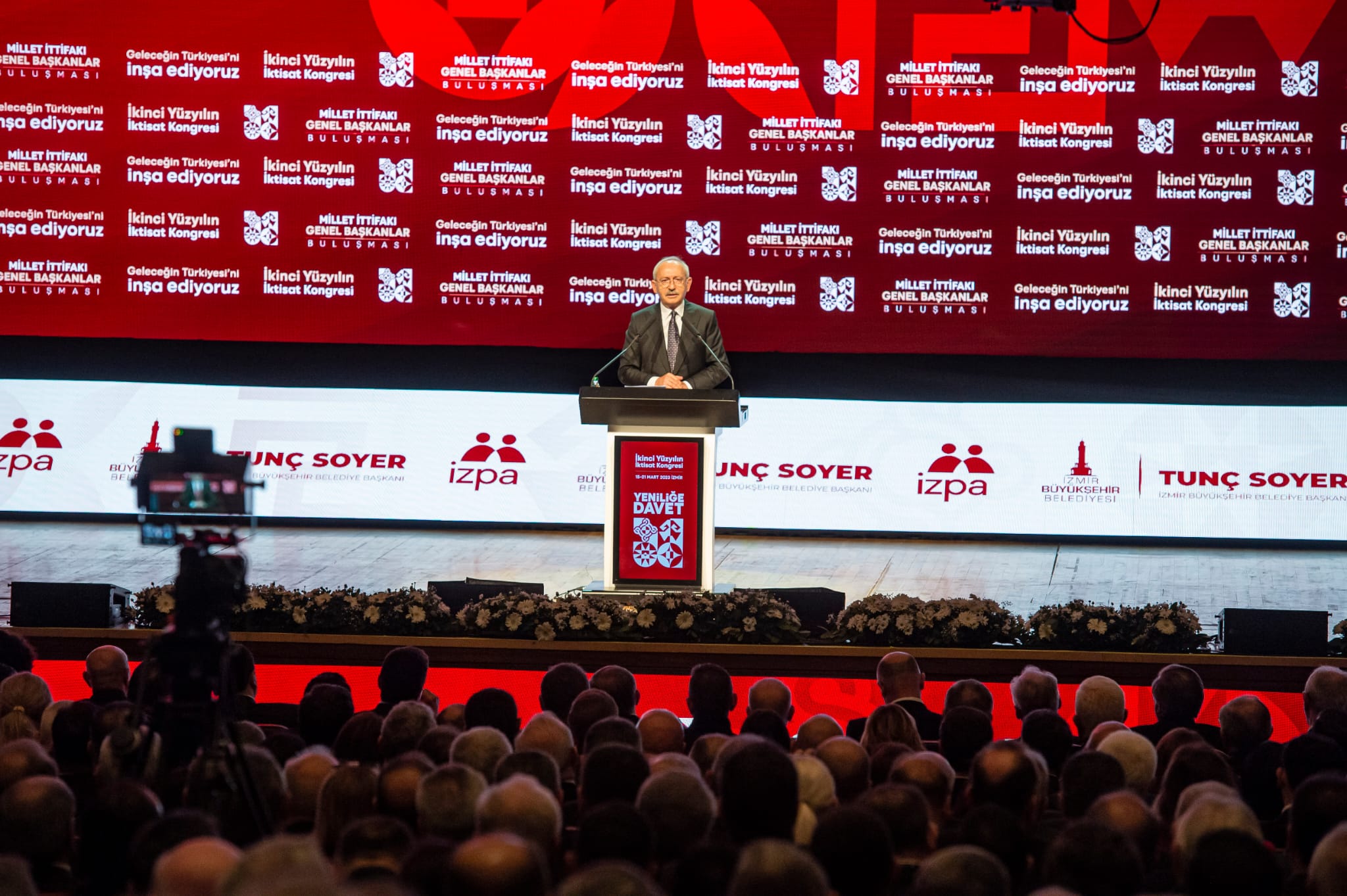 Başkan Soyer, “Bugün Millet İttifakı’nın değerli liderleri olarak siz genel başkanlarımızın izlediği yol da farklı değil aslında. Toplumun kılcallarından beslenen ve farklılıkların zenginlik olarak kabul edildiği toplumsal mutabakatla ortaya konulan bir gelecek Türkiye’si inşa ediyorsunuz. İkinci Yüzyılın İktisat Kongresi, Millet İttifakı’nın attığı tarihi adımlara İzmir’den yaptığımız gönülden bir katkıdır. Katkımızın içine binlerce işçinin, çiftçinin, iş insanının alın terini ve ruhunu koyduk. Yüzlerce uzmanın birikimini koyduk. Umarım kabul buyurursunuz. Bir şey değişecek, her şey değişecek” dedi.