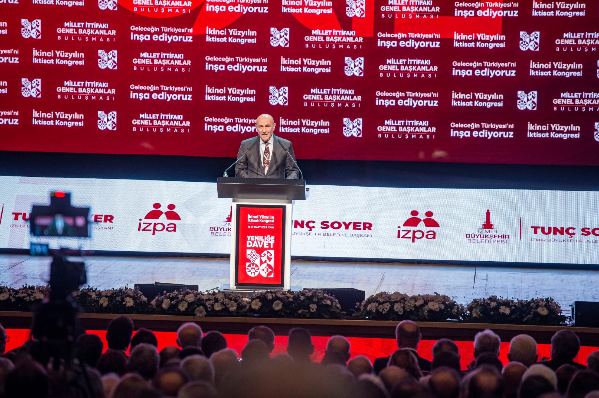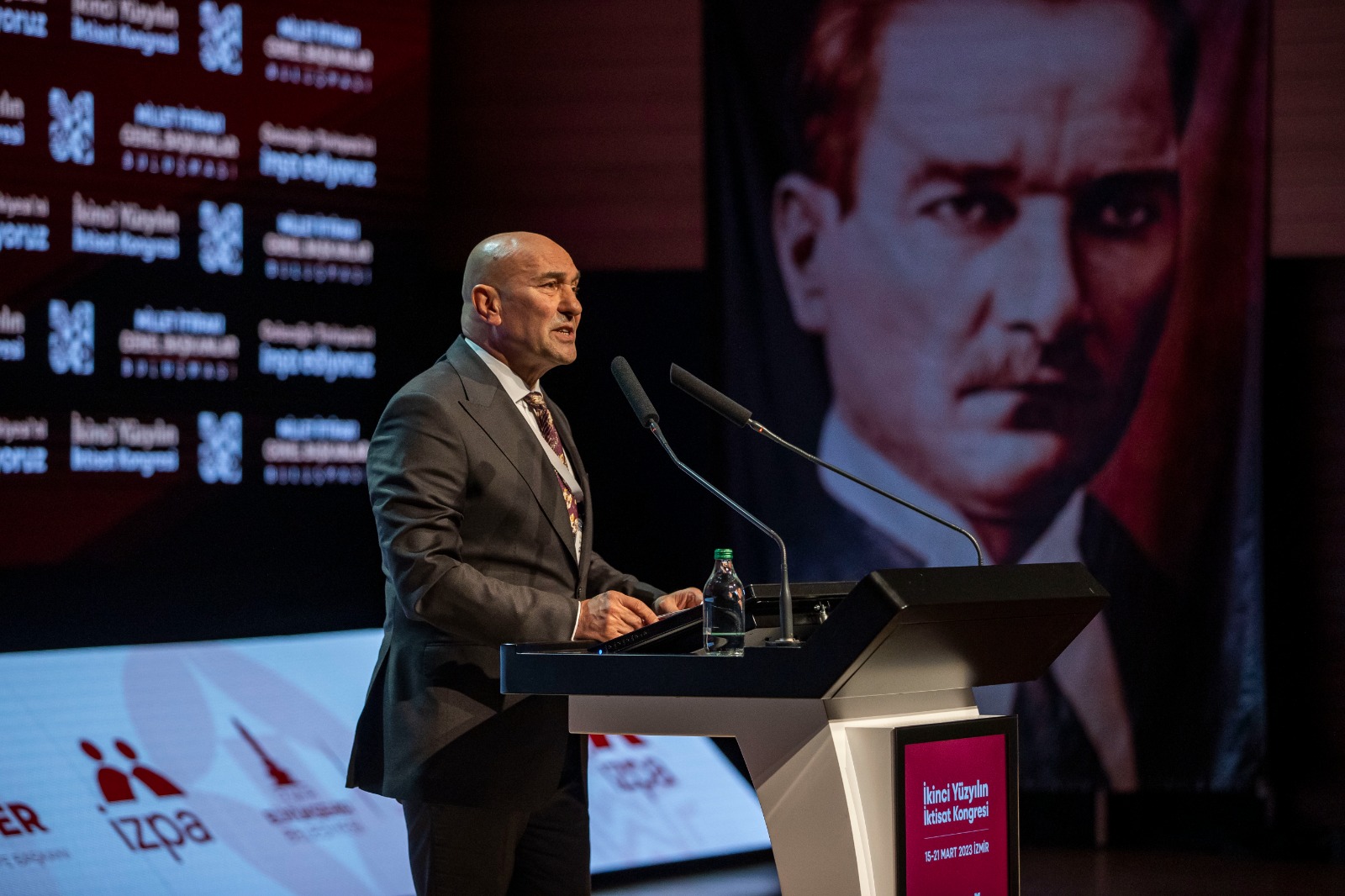 İzmir Büyükşehir Belediye Başkanı Tunç Soyer ise sözlerine Kılıçdaroğlu’nu, “Müstakbel Cumhurbaşkanım” şeklinde selamlayarak başladı. Başkan Tunç Soyer, konuşmasında 1923 yılında İzmir’de yapılan İktisat Kongresi’nden bahsederek başladı. İkinci Yüzyılın İktisat Kongresi’ni bu mirasla düzenlediklerini söyleyen Başkan Soyer, “Tüm bu çalışmaları yaparken bize ilham veren Atatürk’ün bu kongre için izlediği yol ve kurduğu model oldu. Yola çıkarken sadece ortak akılla inşa etmekle ilgili bir kararımız vardı. Bunun sonucunda oluşacak içerikle ilgili bir fikrimiz yoktu. Gördük ki ortak akılla inşa edilen bu süreç, ortaya çok güçlü bir içerik çıkardı. Hiçbir sorunun tek başına çözülemeyeceğini ve ancak uzlaşmayla topyekûn ve sürdürülebilir çözümler üretilebileceğini gördük. İki gün sonra tüm paydaşlarımızın katıldığı kapanış oturumunda ortaya çıkacak ilkeler, geleceğin Türkiye’sinin şekillenmesinde çok önemli bir rol oynayacak. Biz bugünün siyasal ikliminde bugünün sorunlarına çözüm aramak için değil, bugünün siyasal ikliminde geleceğin Türkiye’sine katkı sağlamak için yola çıktık. Sadece yolları, köprüleri ve binaları değil, iyi tasarlanmış bir geleceği miras bırakmak istedik” diye konuştu.