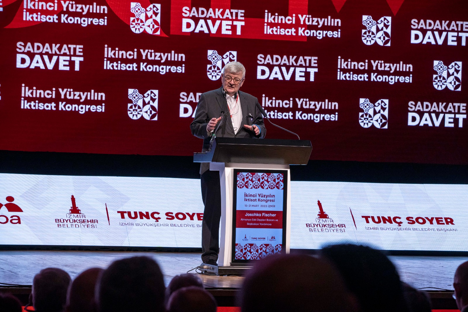 İkinci Yüzyılın İktisat Kongresi’nin “Sadakate Davet” başlıklı altıncı gününün ilk konuşmacısı Almanya eski Dışişleri Bakanı ve Başbakan Yardımcısı Joschka Fischer oldu. Türkiye’nin Orta Doğu yerine yüzünü Batı’ya dönmesi gerektiğini ifade eden Fischer, “Kollarımızı sıvayalım ve gelecek için, barış için birlikte çalışalım” dedi.