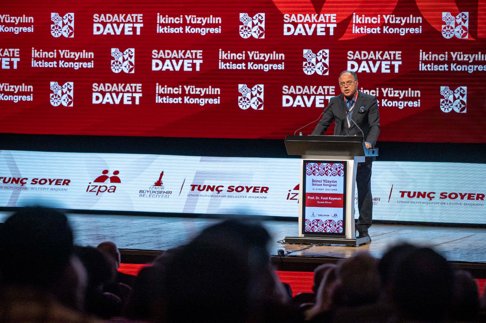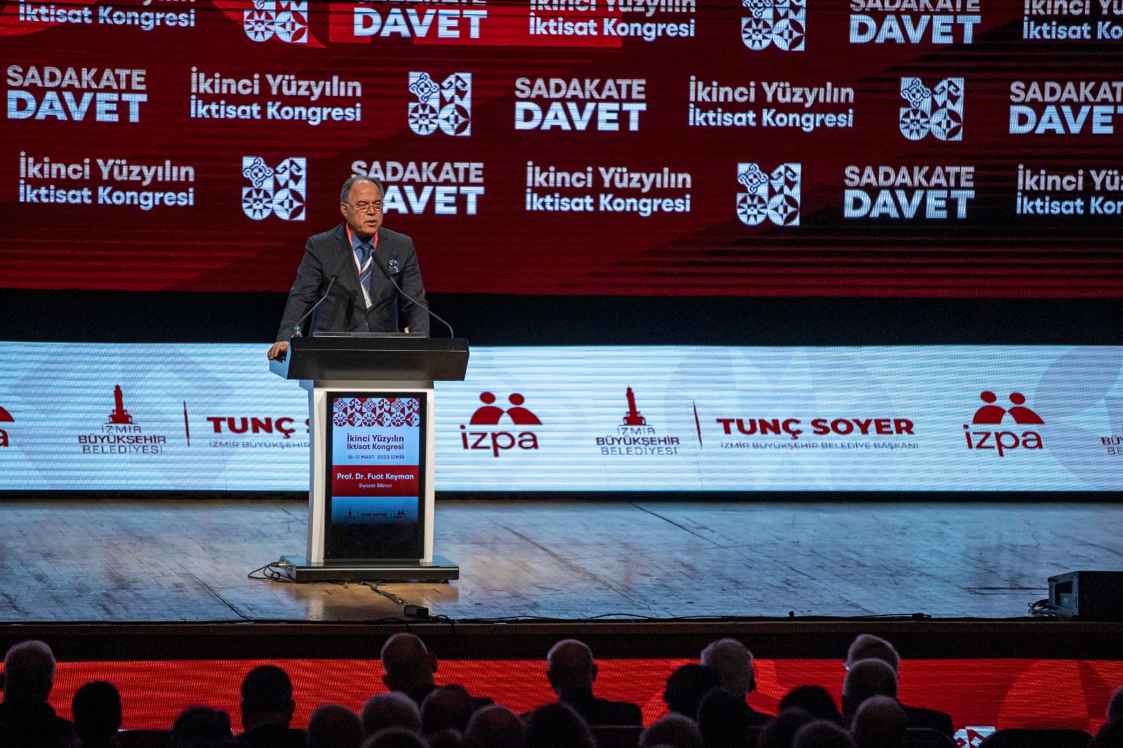 İkinci Yüzyılın İktisat Kongresi’nin altıncı gününde konuşan Sabancı Üniversitesi Rektör Yardımcısı Prof. Dr. Fuat Keyman, sonraki yüzyılda kentlerin öne çıkacağına değinerek, “Kentlerin Türkiyesi'nde İzmir özel bir kent. Türkiye'nin geleceği İzmir'in geleceğinde yatıyor. İzmir’in kendini nasıl yöneteceğinde. O nedenle kongrenin İzmir'de olması önemli” dedi.