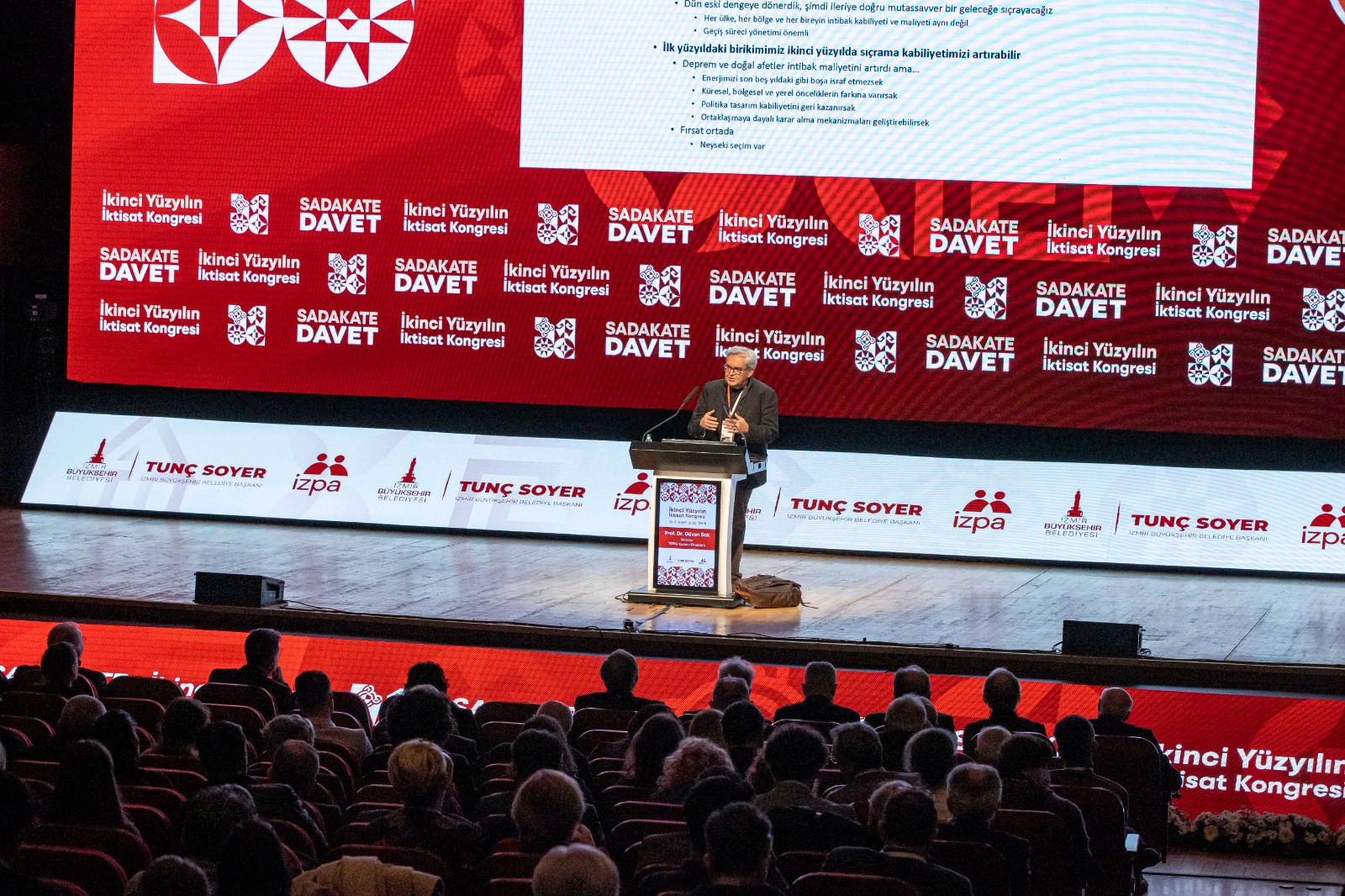 İkinci Yüzyılın İktisat Kongresi kapsamında Türkiye Ekonomi Araştırma Vakfı (TEPAV) Başkanı Prof. Dr. Güven Sak, “Dünya Yeniden Yapılanırken Türkiye’nin Ortak Akılla İnşası” başlıklı bir konuşma yaptı. Prof. Dr. Güven Sak, “Uzun bir süreden beri Türkiye’de anı yaşıyoruz ama geçen Ağustos’tan beri İzmir Büyükşehir Belediyesi’nin katkısıyla İktisat Kongresi hazırlıkları kapsamında ‘bundan sonra ne olabilir? diyerek geleceği düşünme fırsatı bulduk. Türkiye’de olup bitenleri anlamak için ana bakmamak gerekiyor; orta vadede bakmak gerekiyor” ifadelerini kullandı.