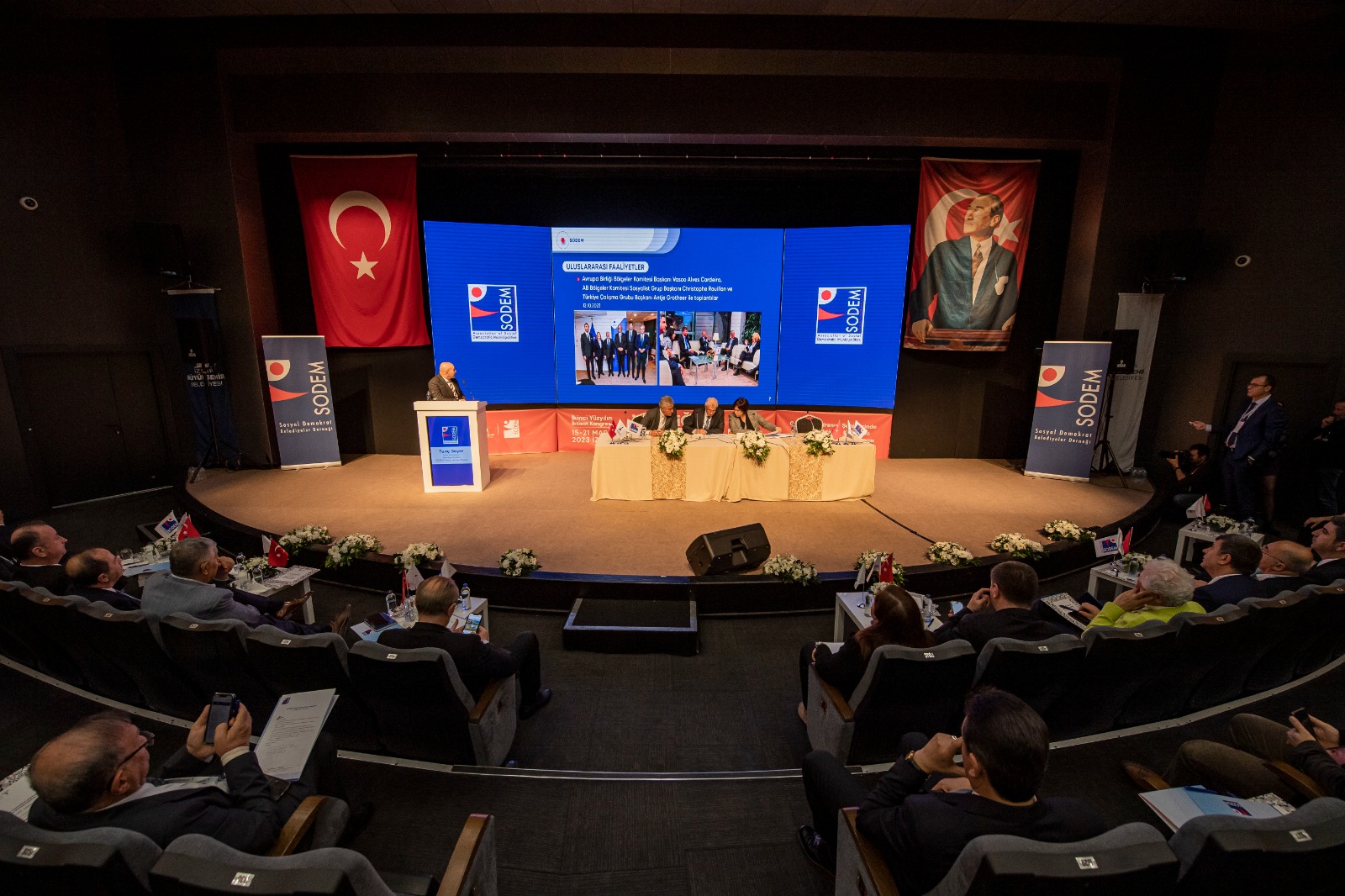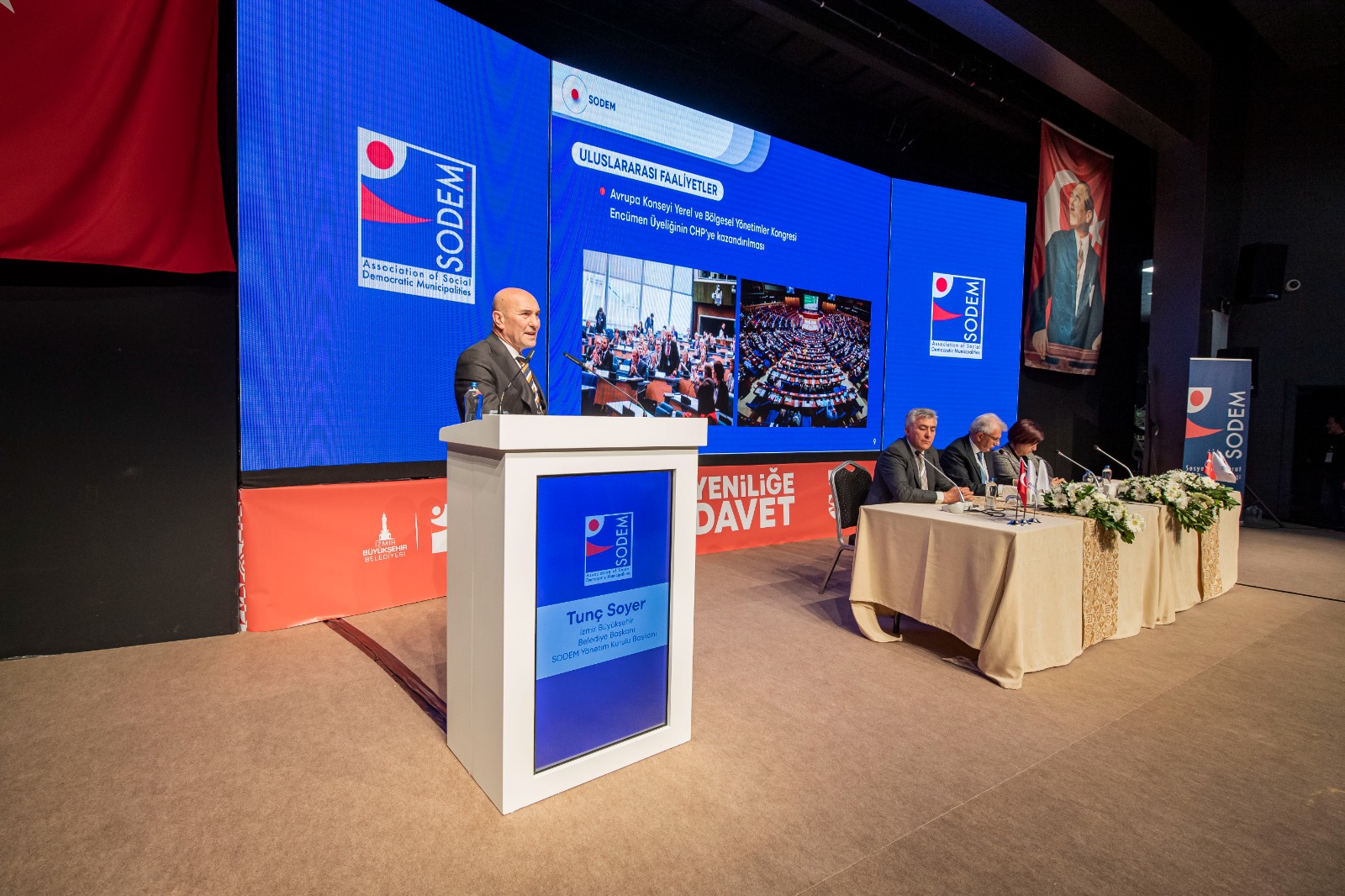 Sosyal Demokrat Belediyeler Derneği (SODEM) Olağan Genel Kurulu, İsmet İnönü Sanat Merkezi'nde yapıldı. SODEM'in Yönetim Kurulu Başkanlığı'nı yürüten İzmir Büyükşehir Belediye Başkanı Tunç Soyer, “Bugün geldiğimiz nokta hepimizin iftihar edeceği bir noktadır ama asla yeterli değildir. SODEM olarak çok daha büyük bir potansiyel taşıdığımızı biliyoruz” dedi.