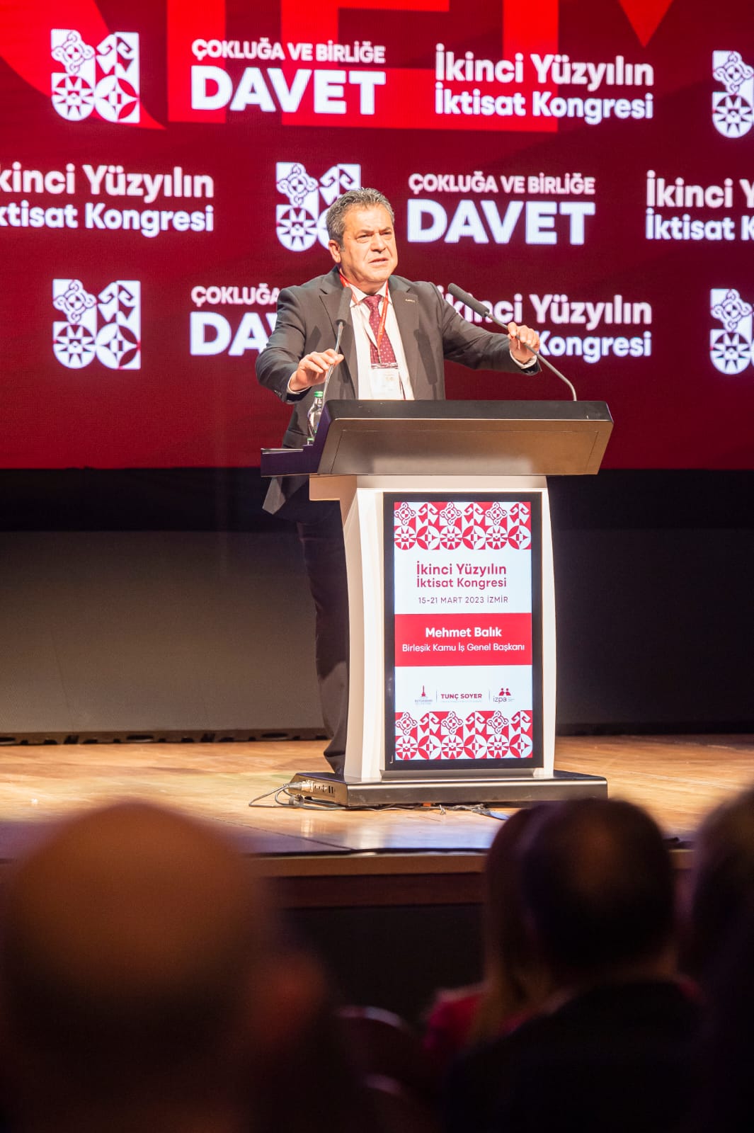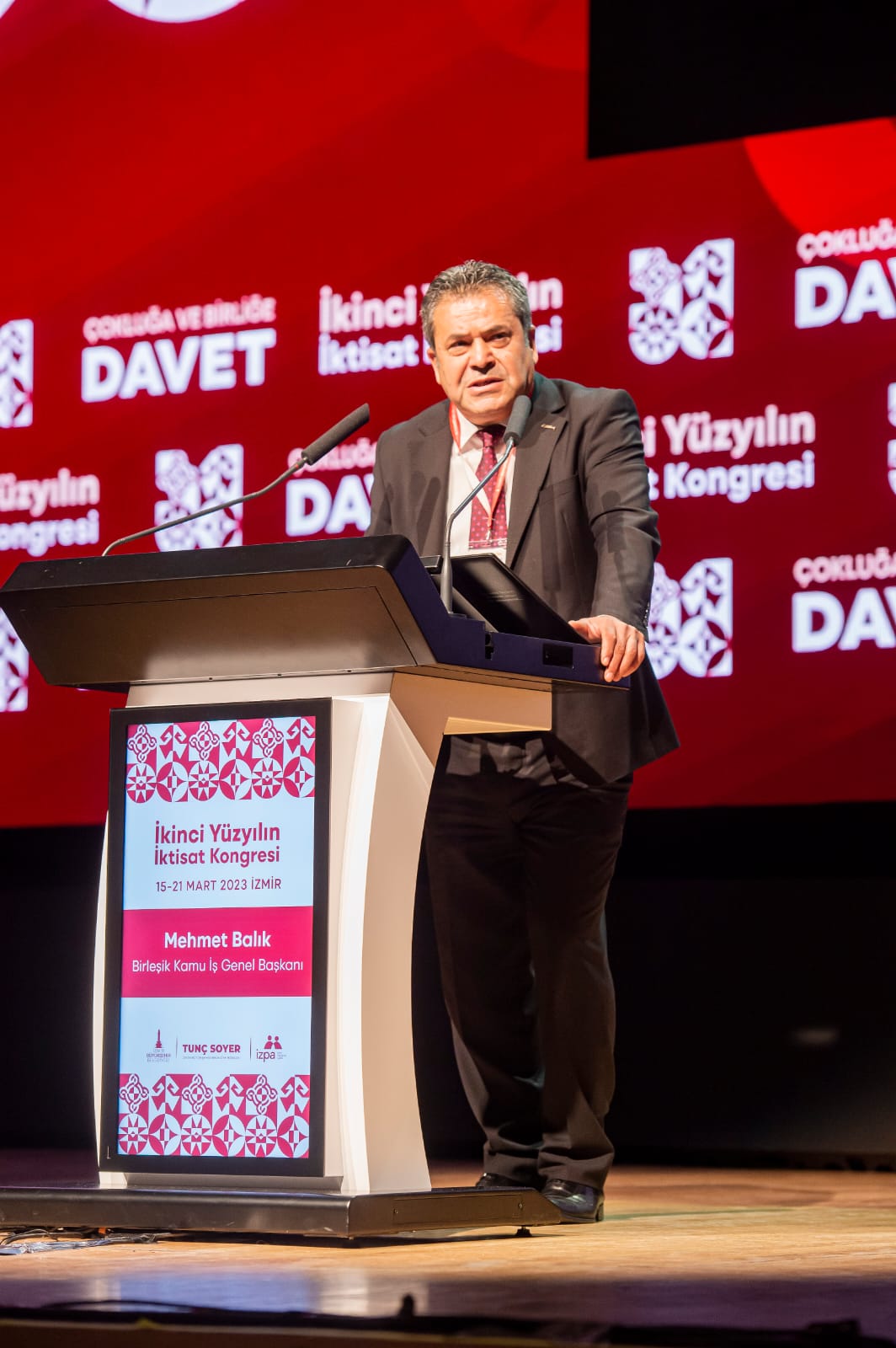 İkinci Yüzyılın İktisat Kongresi kapsamında konuşan Birleşik Kamu İş Genel Başkanı Mehmet Balık “Taviz vermeyeceğimiz üç konu var; eğitim, sağlık ve milli güvenlik. Eğer bir ülkede eğitim, sağlık ve güvenlik kamu hizmeti olmaktan çıkmışsa, o ülkenin ayakta kalması mümkün değil” dedi.