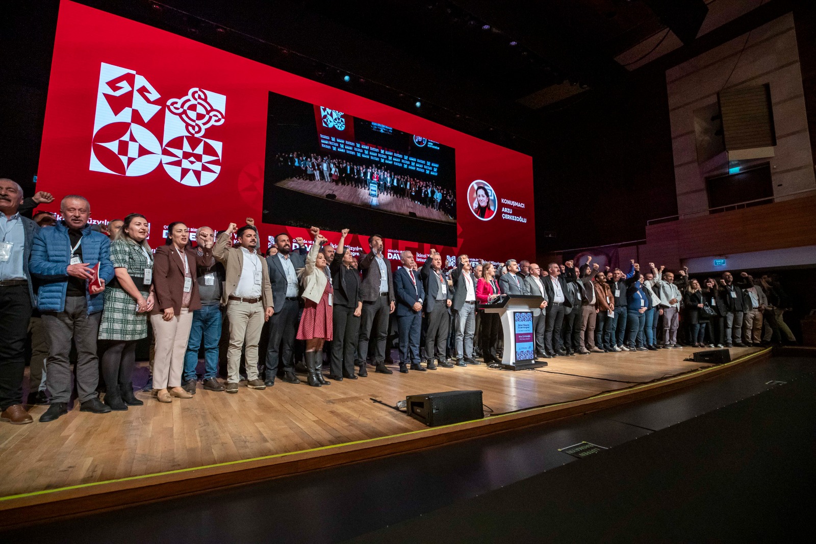 Artık yeni bir toplumsal düzenin şart olduğunu gördüğünü ifade eden Arzu Çerkezoğlu, “Ülkemiz çok zorlu bir dönemden geçiyor. Ama bir o kadar da kararlı, umutlu ve heyecanlı bir tarihsel andayız. Kararlılığımız deprem felaketinin 85 milyonun yüreğinde açtığı yaraların derinliğinden geliyor. Umudumuz, gücünü hayatı her gün ama her gün yeniden üreten ellerimizden alıyor ve heyecanımız bugün bu topraklarda tıpkı yüz yıl önce olduğu gibi yeni bir ülke kurmanın tarifsiz coşkusu ve gururu ile büyüyor” dedi.