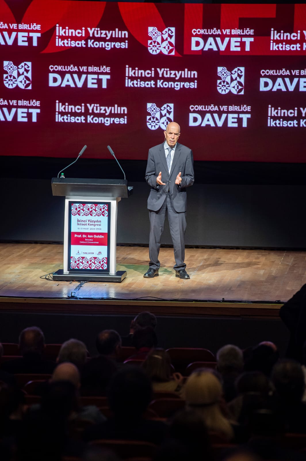 İzmir Büyükşehir Belediyesi tarafından düzenlenen İkinci Yüzyılın İktisat Konrgesi’nin son günü “Çokluğa ve Birliğe Davet” temalı oturumlarla devam etti. Paydaş temsilcilerinin konuşmalarının ardından kürsüye gelen Oxford Üniversitesi’nden küreselleşme ve kalkınma uzmanı, iktisatçı Prof. Dr. Ian Goldin “Kurtuluş: Küresel Krizden Daha İyi Bir Dünyaya” başlığı altında bir konuşma yaptı. Ian Goldin, “Küreselleşme artık tartışmalı bir konu. Artık bir yerde olan şey hepimizi etkiyor. Türkiye'deki berbat deprem hepimizi etkiledi. Ukrayna'da olan şey hepimizi etkiledi” dedi.
