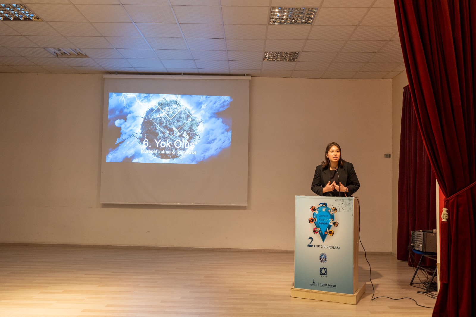 Sosyal İklim Derneği Genel Sekreteri Öykü Özen, tüm dünyayı etkisi altına alan iklim krizi, su krizi ve gerekli önlemler alınmazsa dünyada yaşanması muhtemel gerçekler ile ilgili çarpıcı bir sunum gerçekleştirdi.
