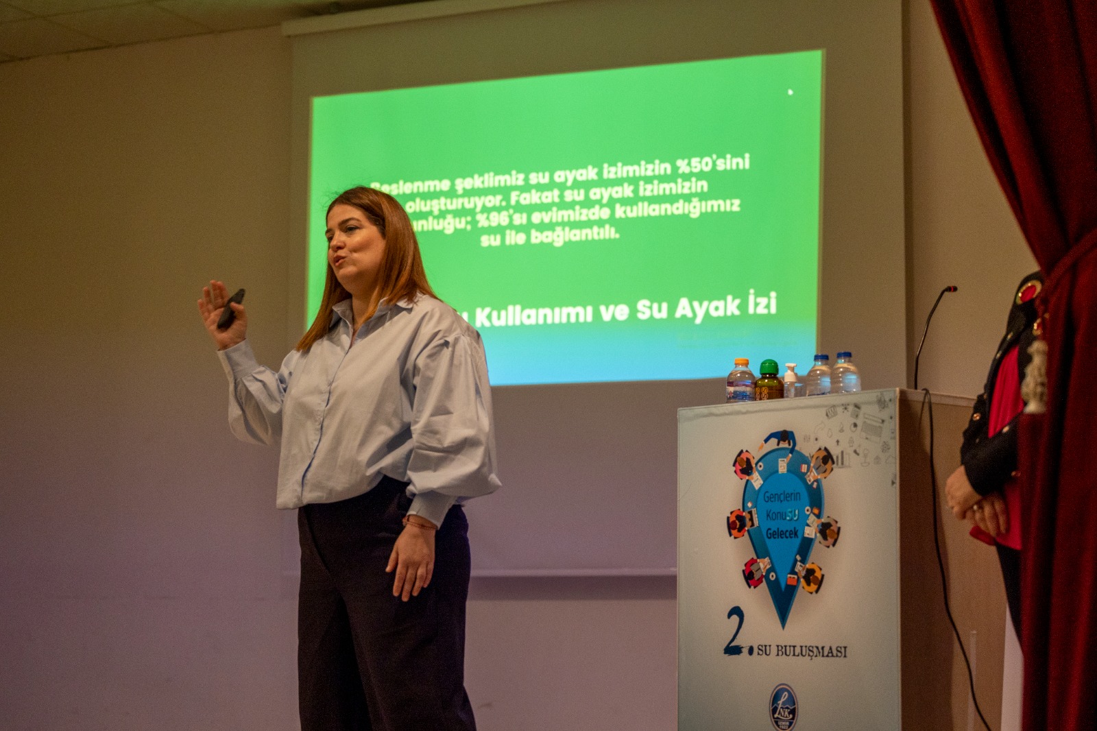 Etkinliğin 2. oturumunda ise Yaşar Üniversitesi’nden Doç. Dr. Ferah Onat ve Mutluluk Tasarımcısı hesabında binlerce takipçisiyle bilinçli su kullanımı ile ilgili bilgiler paylaşan influencer Gizem Dağ genç öğrencilerle buluştu.