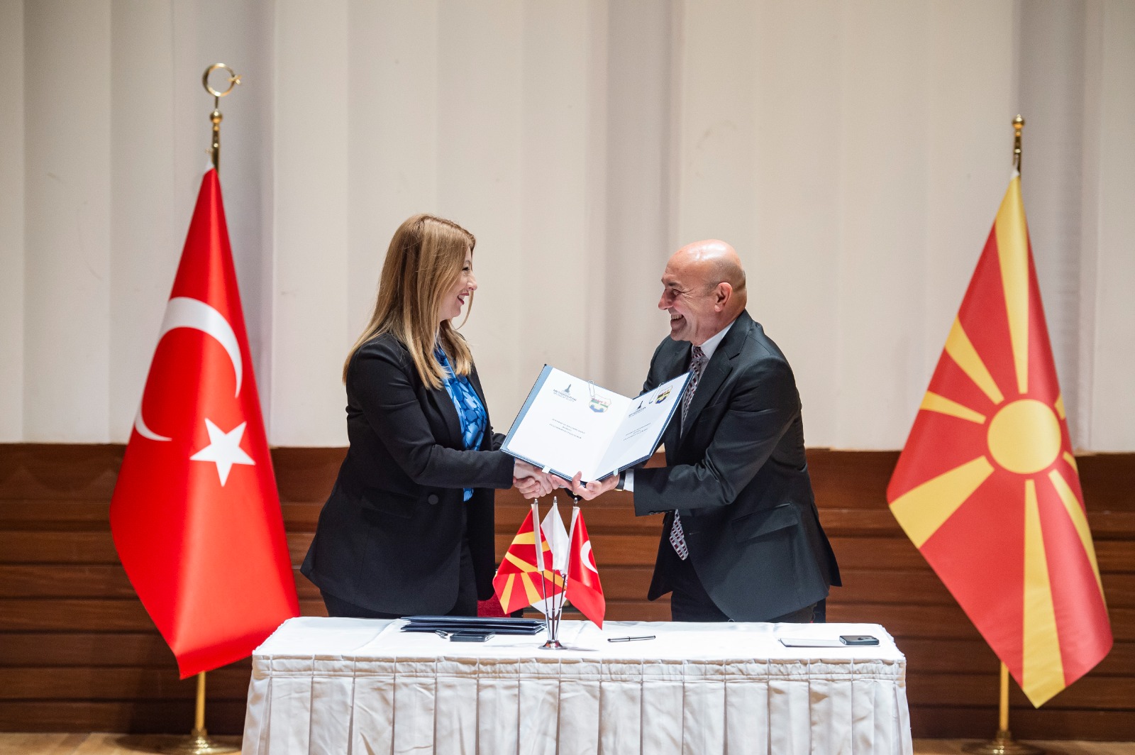 Üsküp Belediye Başkanı Danela Arsovska ise “Türkiye ve Makedonya halkları tarih boyunca kardeş oldular. İzmir ve Üsküp birbirlerini içinden hisseden iki büyükşehir. Bu anlaşma sayesinde kardeşliğimizi pekiştireceğiz. Biz iyi günde kötü günde beraber olacağız. İşbirliği yapacağımız çok fazla alan var. Tunç Başkanımla bu işleri başaracağız. Bizim için kardeş belediye anlaşması yapmak büyük bir gurur” diye konuştu.