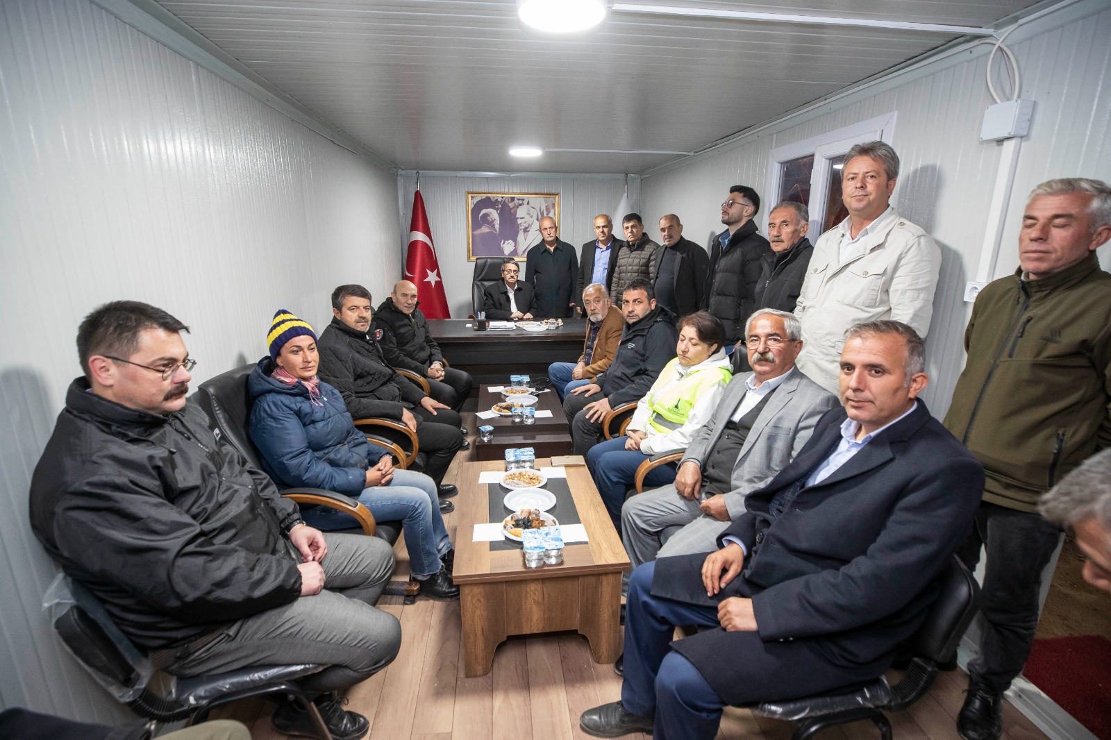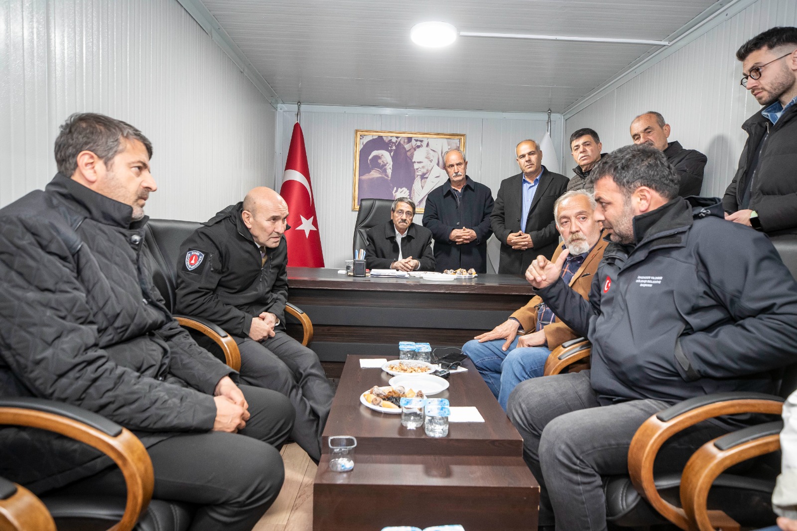 Başkan Soyer, Tut ilçesinden sonra depremde belediye binası da yıkılan Harmanlı’da Belediye Başkanı Ahmet Değirmenci'yle bir araya geldi. Değirmenci, ilçede barınma sorununun olduğunu ifade etti. Başkan Tunç Soyer, “Altyapısını hazırlayarak bu beldemize konteyner takviyesi yapacağız” dedi.