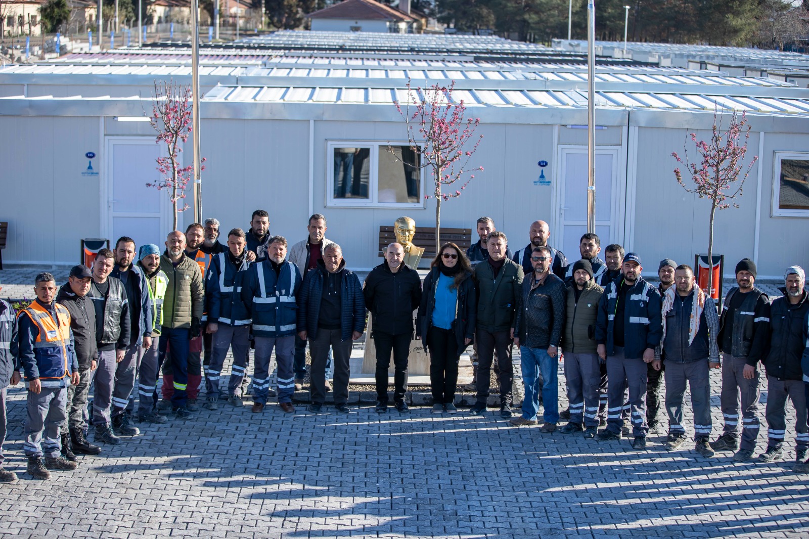 16 dönüm arazi üzerinde 232 konteyner için altyapı çalışmalarının tamamlandığını söyleyen İzmir Büyükşehir Belediye Başkanı Tunç Soyer, “120 tanesinin de montajı bitti. Tamamen iç tefrişi de tamamlandı. Pis su, temiz su altyapısı, şofben, mutfak, yataklar ve dolaplarıyla 120 konteynerimiz hizmet verecek. Geriye kalan 112 konteyner için de arkadaşlarımız hazırlıkları tamamladı. Her birine minnettarım. Her birine çok teşekkür ediyorum. Burada çalışmak İzmir'de çalışmaya benzemiyor. Koşullar çok daha ağır. Bütün bunları aşarak büyük bir vicdanla, yüce gönüllülükle bu işi yaptılar” dedi.