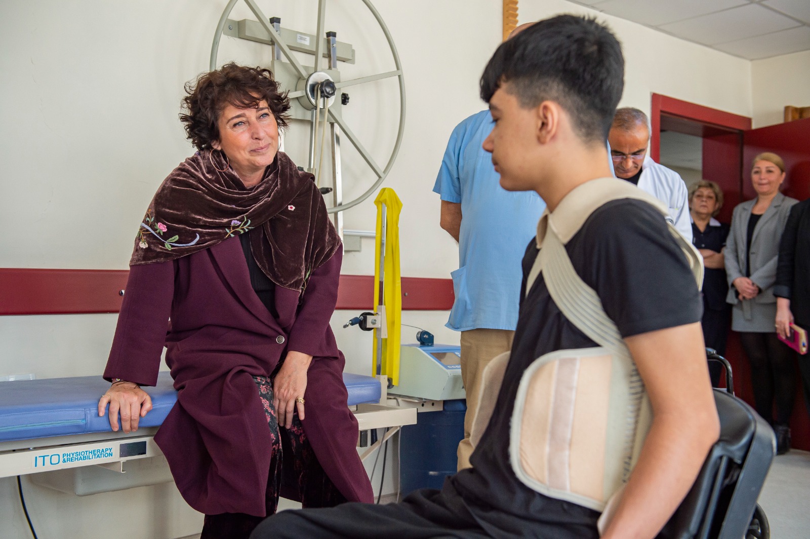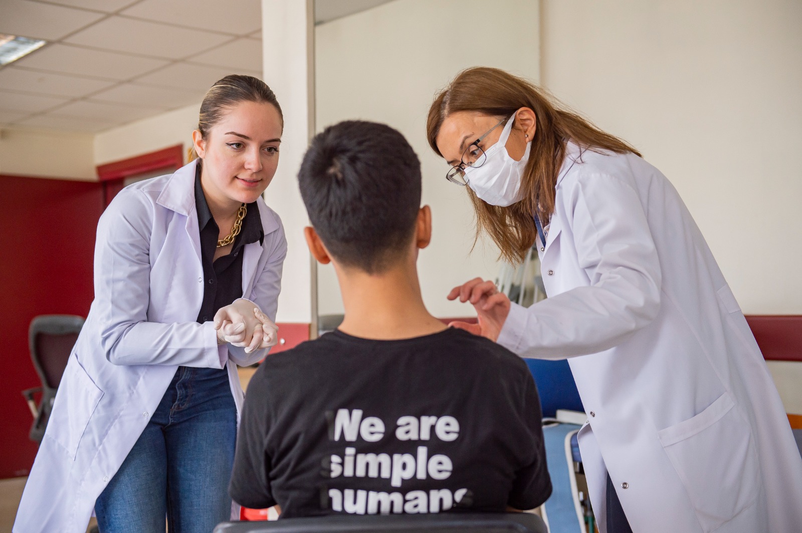 6 Şubat depremleri sırasında Osmaniye’de enkaz altına kalarak yaralanan 14 yaşındaki Mustafa Elmas omuriliğindeki zedelenme nedeniyle yatağa bağımlı hale geldi. Depremde anne ve babasını da kaybeden Mustafa’nın yeniden yürüyebilmesi için yoğun bir tedavi ve bakım süreci geçirmesi gerekiyordu. İzmir Büyükşehir Belediye Başkanı Tunç Soyer’in talimatıyla Eşrefpaşa Hastanesi’ne getirilen genç Mustafa, burada uygulanan fizik tedavi sayesinde ilk adımlarını kısa sürede attı. İzmir Büyükşehir Belediye Başkanı Tunç Soyer’in eşi Neptün Soyer, hastanede ziyaret ettiği Mustafa’nın hem eğitiminde hem de geri kalan hayatında elinden tutulması gerektiğini söyledi.
