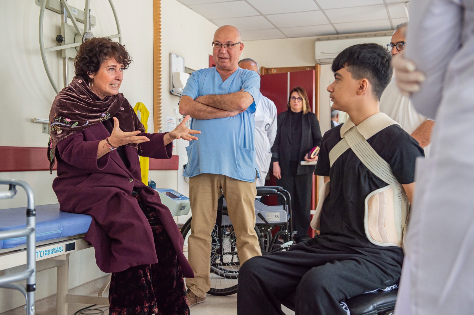 Mustafa Elmas’ı hastanenin fizik tedavi ünitesinde ziyaret eden İzmir Büyükşehir Belediye Başkanı Tunç Soyer’in eşi Neptün Soyer, “Mustafa büyük sıkıntılarla İzmir’e geldi ama burada yepyeni bir hayat onu bekliyor. İzmir ona umut olacak. İzmir ona yeni şanslar getirecek. İzmir’in depremde gösterdiği yardım ve dayanışma örneği Türkiye’nin ilham alması gereken bir durum ancak bu bir-iki günlük, birkaç haftalık bir mesele değil. Mustafa’nın yeni hayatında elinden tutmamız gerek” dedi.
