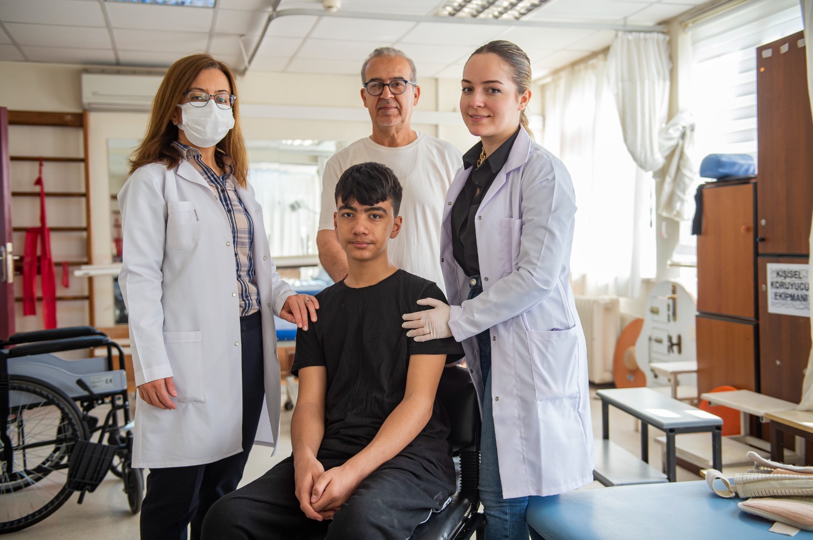 Mustafa Elmas’ın genel durumu hakkında bilgi veren İzmir Büyükşehir Belediyesi Eşrefpaşa Hastanesi Fizik Tedavi Uzmanı Dr. Belkıs Çolak, “Mustafa ile tanışmamız çok yeni. 3 gün önce tanıştık. Mustafa’nın cerrahi operasyonu Osmaniye Devlet Hastanesi’nde gerçekleşti. Omurga yaralanması vardı. Hastanemize geldiğinde ise yürüyemez durumdaydı. Yavaş yavaş çalışmaya başladık. 3 gün gibi kısa bir sürede ise iyi bir yol kat ettik. Egzersiz ve güçlendirme çalışmalarıyla destek oluyoruz. Uzun bir yolumuz var. Birlikte sabırla Mustafa’yı sağlıkla yürüyebilir hale getireceğiz” şeklinde konuştu.
