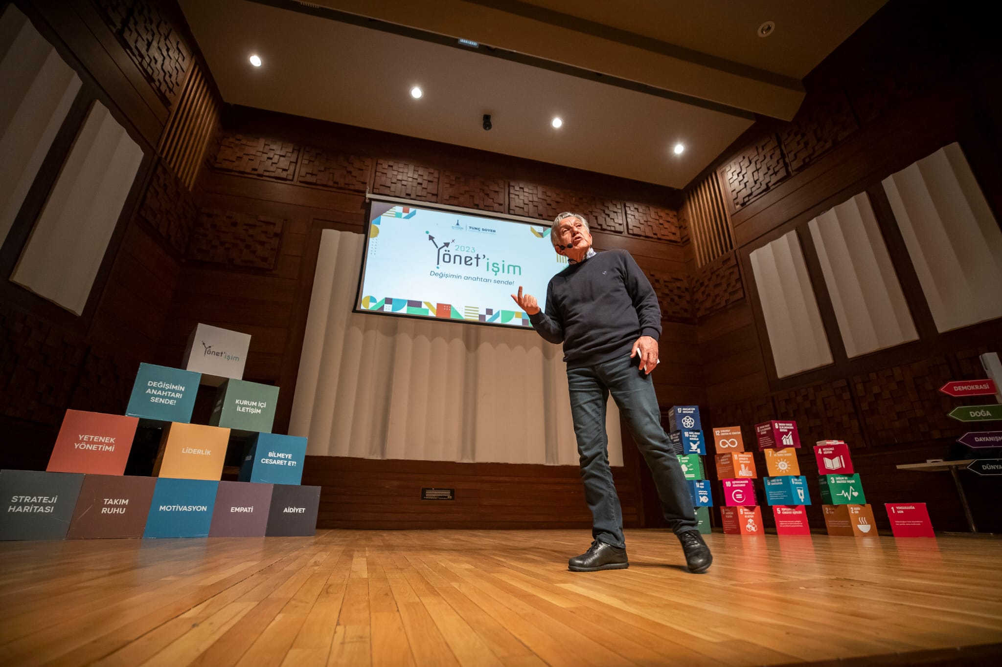 İzmir Büyükşehir Belediyesi’nin kente daha iyi hizmet verebilmek için belediye yöneticilerinin yönetsel ve kişisel gelişimlerini desteklemeyi amaçlayan "Liderlik ve Yönetim Becerilerini Geliştirme Programı YÖNET'İŞİM 2023", "Çevik Liderlik" teması ve "Değişimin Anahtarı Sende" mottosuyla başladı.