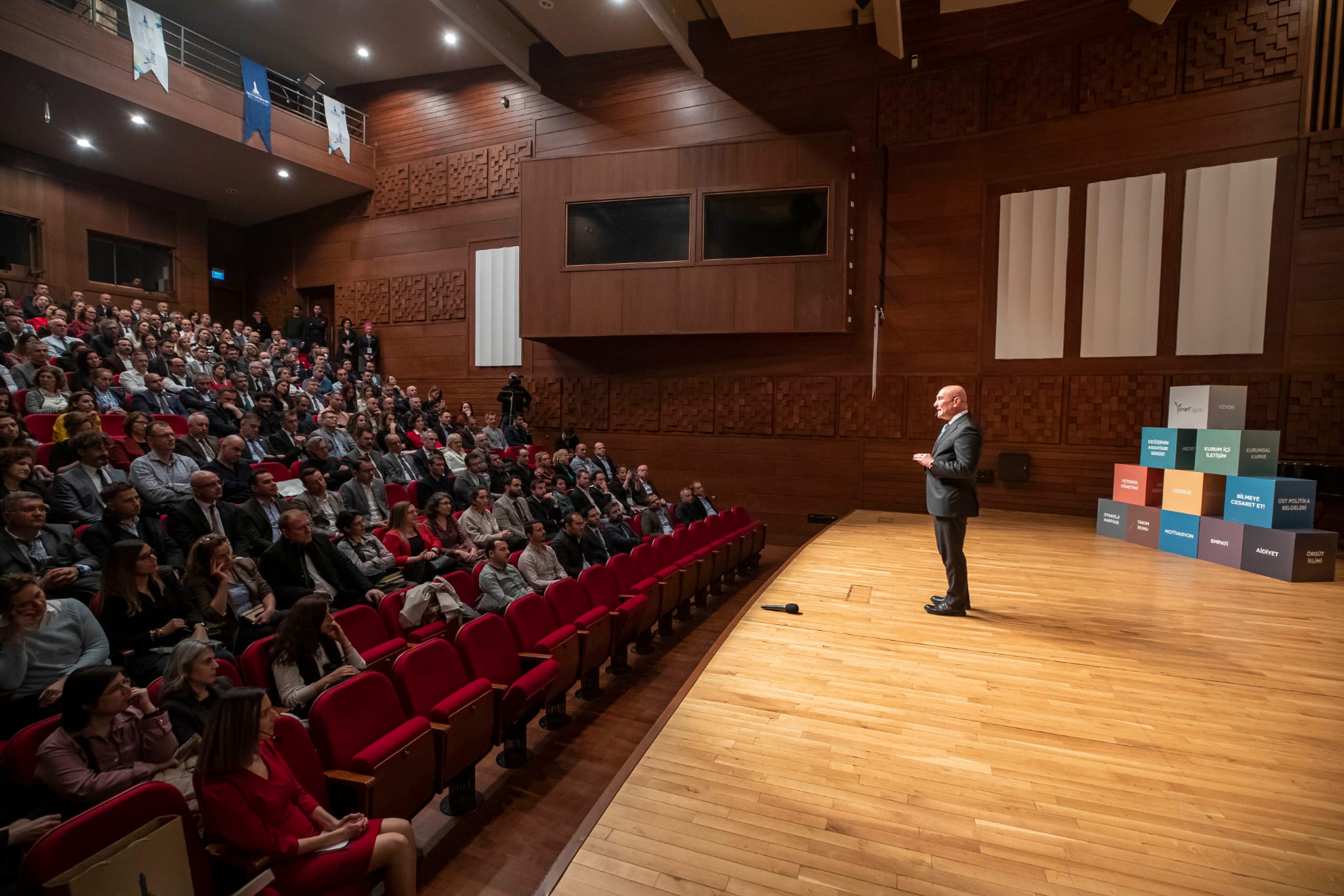 Araştırmacı yazar Bekir Ağırdır, belediye yöneticilerine seslenerek “Çağ değişti. Artık dünyadaki değişimi dikkate almadan bir şey yapmamız mümkün değil. Artık her şeyi yerküreyle uyumlu bir şekilde yürütmemiz lazım. Bir de önümüzde teknolojik sıçrama var. Artık zaman ve mekandan bağımsız bir hayat yaşıyoruz. Hız her şeyin önüne geçmiş durumda ve hız dayanıklılık kavramını değiştirdi. Hızın esas olduğu bir dünyada yönetim sistemi nasıl olmalı? Deprem sürecinde karar mekanizması geç kaldığında kaç canın kaybedildiğini gördük. Artık karşınızda çok boyutlu ve aktörlü bir hayat var. Bugünün bu karmaşıklığı stratejik planlarla yönetilemez. Artık klasik belediyecilik anlayışıyla yöneticilik yapamayız” ifadelerini kullandı.