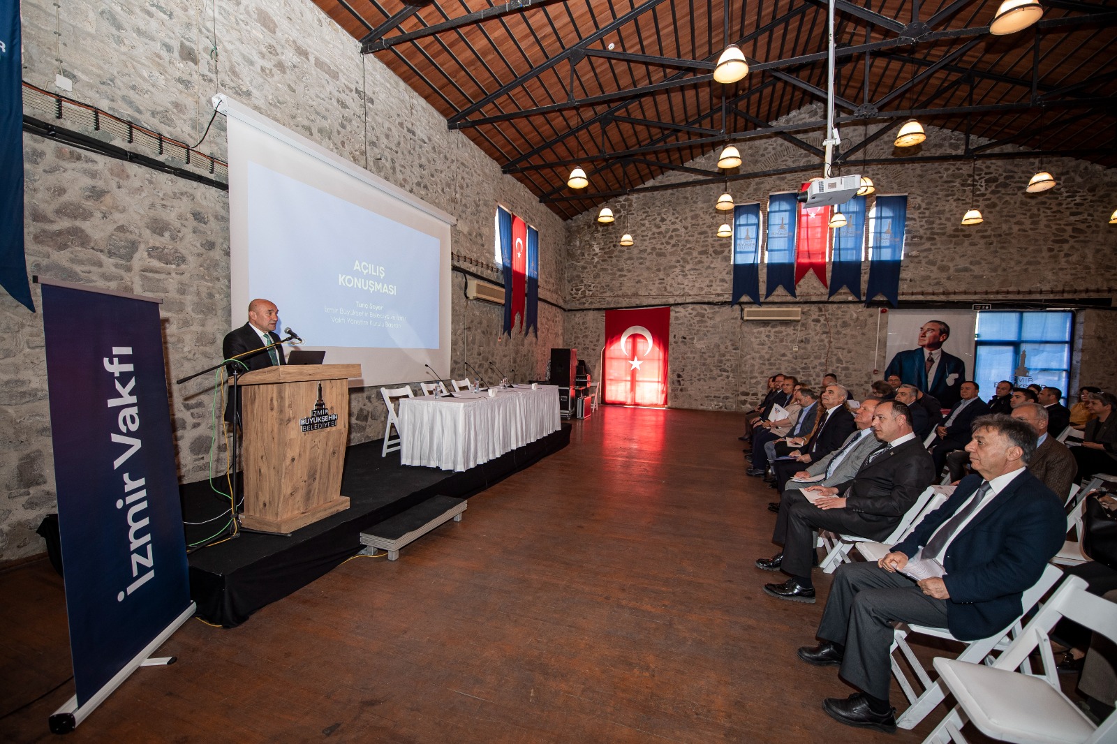 İzmir Vakfı’nın 2022-2023 yılı genel kurul toplantısı Tarihi Havagazı Fabrikası’nda yapıldı. Toplantıya İzmir Büyükşehir Belediye Başkanı ve İzmir Vakfı Başkanı Tunç Soyer, İzmir İl Kültür ve Turizm Müdürü Murat Karaçanta ve kurul üyeleri katıldı. İzmir Vakfı Genel Müdürü Deniz Karaca vakfın faaliyet raporu hakkında bilgi verdi. 71 üyenin yer aldığı İzmir Vakfı’nın amaçları arasına başta turizm olmak üzere kentin ekonomik, kültürel, sanatsal ve sosyal alandaki potansiyelini, İzmir’in şehir olarak farkındalığını ve bilinirliğini artırmaya yönelik etkinlik ve eğitimler düzenleme maddeleri eklendi.