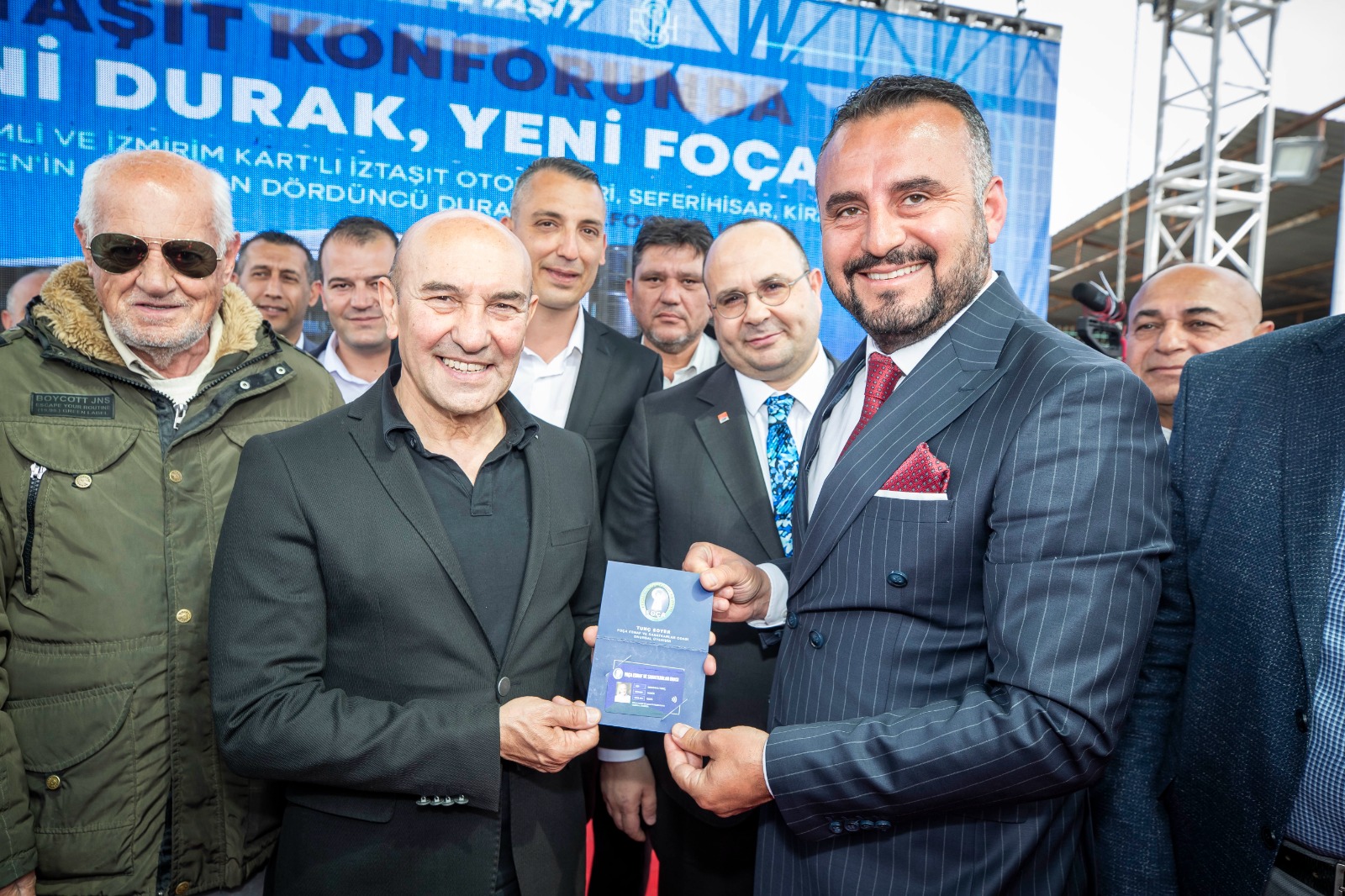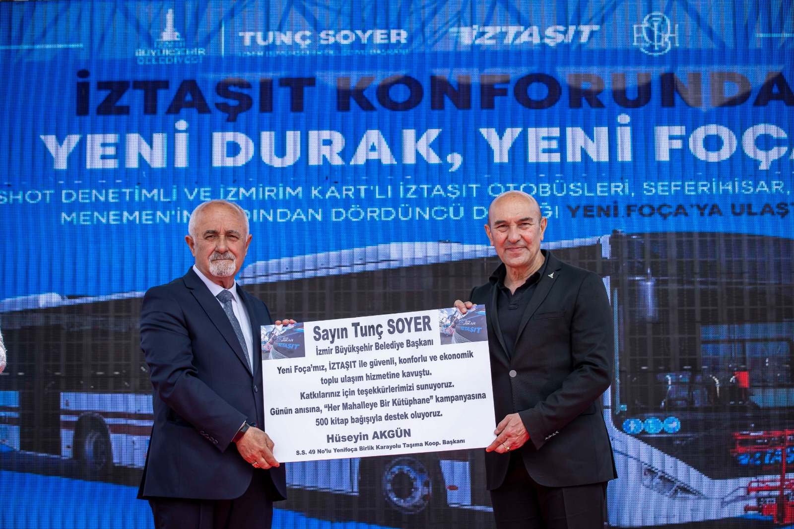 Ulaşım Dairesi Başkanlığı ile S.S. 49 No'lu Yeni Foça Birlik Kooperatifi arasında imzalanan sözleşme ile “Gittiğin Kadar Öde” ve “A” tarifeleriyle Yeni Foçalıların İzmir Büyükşehir Belediyesi’nin kurumsal gücüyle buluştuğunu söyleyen Başkan Tunç Soyer, “İZTAŞIT otobüslerimiz İzmir Otogarı, Aliağa ve Eski Foça bağlantılı hatlarda çalışacak. Burada 3'ü kadın, toplam 38 şoför kardeşimiz görev yapacak. İZTAŞIT ile Yeni Foça’da ulaşımda nakit ödeme dönemi de sona eriyor. İzmirim Kart’la seyahat edebilme imkânı geliyor. Böylelikle 60 ve 65 yaş grubu hemşerilerimiz, engelli vatandaşlarımız, öğrenciler ve öğretmenler, ücretsiz veya indirimli toplu ulaşım haklarından yararlanabilecek. Yeni Foçalılar, İzmirim Kart sayesinde il genelindeki aktarma sisteminden de faydalanacak” dedi.