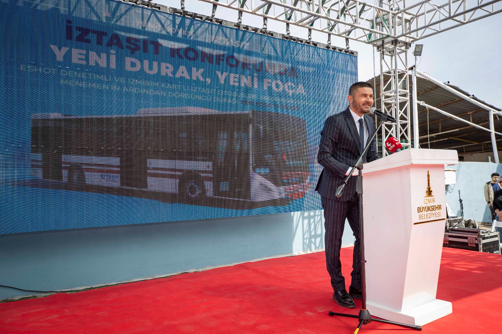 İzmir Büyükşehir Belediye Başkanı Tunç Soyer’in kentin her yerinde güvenli, konforlu ve ekonomik toplu taşıma hizmeti sunmak için dört yıl önce Seferihisar’da başlattığı İZTAŞIT projesi, Yeni Foça’da da hayata geçti. Yeni Foça Garajı’nda düzenlenen törene İzmir Büyükşehir Belediye Başkan Vekili Mustafa Özuslu, İzmir Büyükşehir Belediyesi Genel Sekreteri Barış Karcı, Foça Belediye Başkanı Fatih Gürbüz, CHP İzmir İl Başkanı Şenol Aslanoğlu, CHP milletvekili adayları, Yeni Foça Birlik Kooperatifi Başkanı Hüseyin Akgün, belediye bürokratları, muhtarlar ve Foçalılar katıldı.