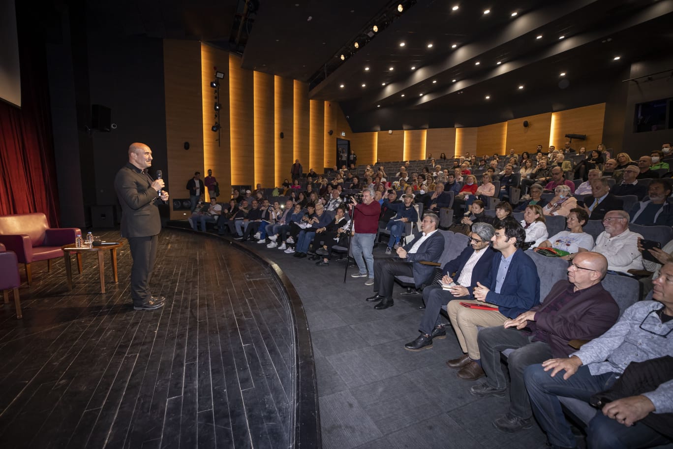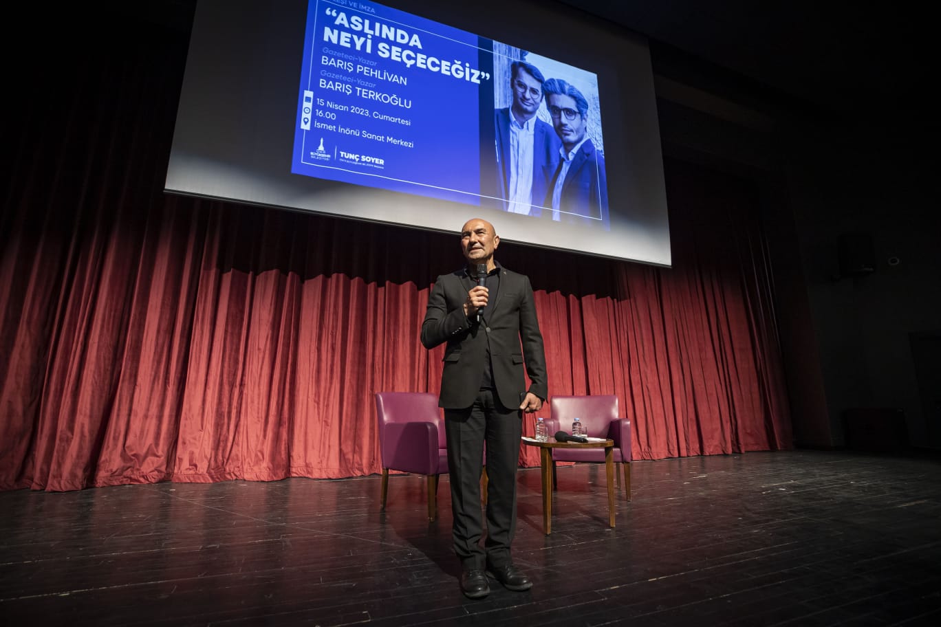 İzmir Büyükşehir Belediye Başkanı Tunç Soyer, İsmet İnönü Sanat Merkezi’nde düzenlenen gazeteci ve yazar Barış Pehlivan ve Barış Terkoğlu’nun “Aslında Neyi Seçeceğiz” söyleşisine katıldı. Açılışta konuşan Başkan Soyer, “Haber alma özgürlüğü hepimizin hakkı. Maalesef bu dönemde bu hakkımız kalmadı. Gazetecilerimiz iyi ki buradalar, iyi ki bizlerle bu bilgileri paylaşıyorlar” dedi.