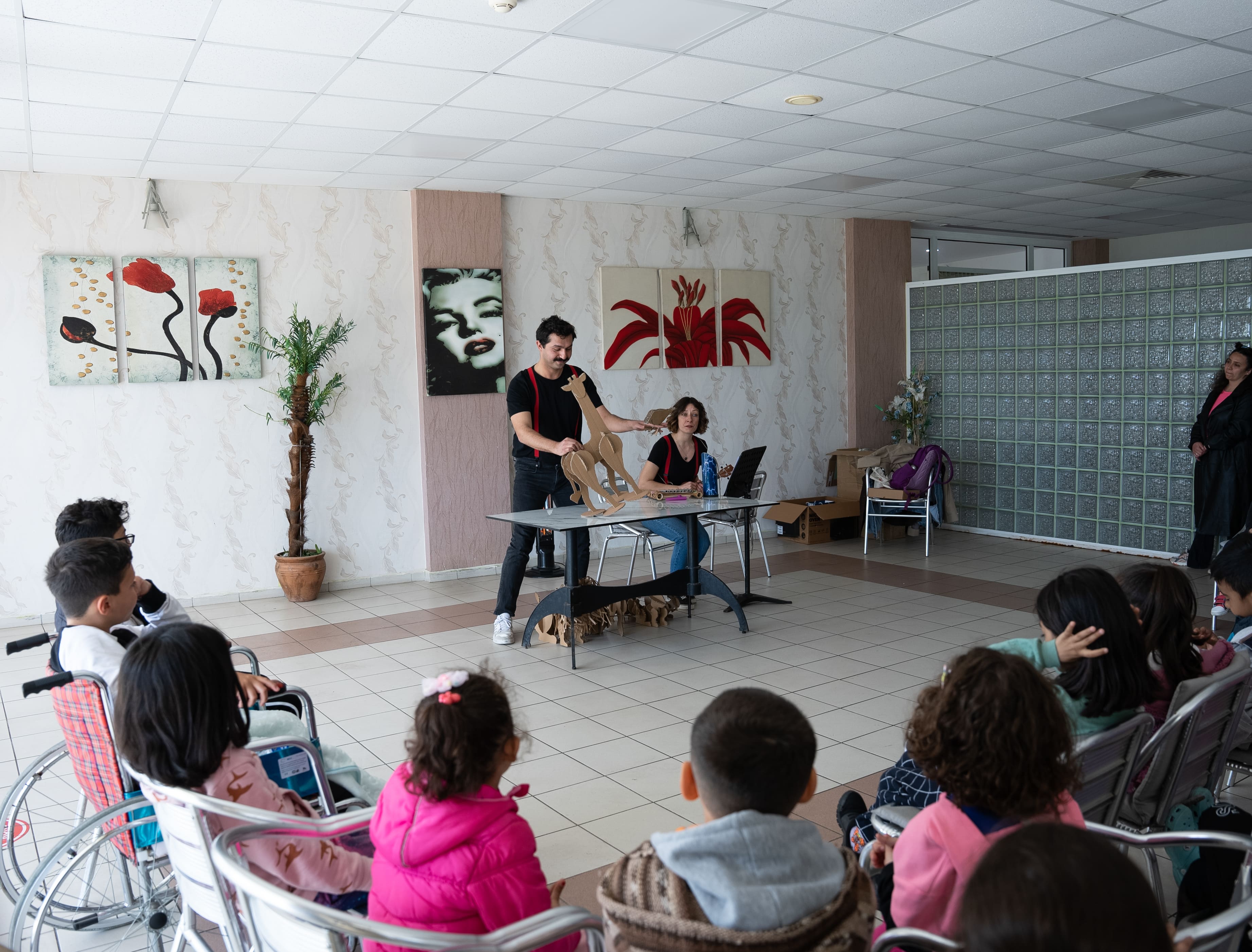 Mart ayının başından bu yana süren eğitimlerini ve hazırlıklarını tamamlayan İzBBŞT çalışanları, depremzede çocuklarla bir araya gelmeye başladı. İlk olarak Foça Özel Eğitim Merkezi Komutanlığı ile İzmir Büyükşehir Belediyesi İZELMAN A.Ş Buca Sosyal Tesisleri’nde aileleriyle konaklayan çocuklarla bir araya gelen grup, etkinliklerini de Sosyal Projeler Dairesi Başkanlığı’nın Örnekköy yerleşkesinde sürdürdü. İnisiyatif üyelerinin projeye özel olarak yazdığı “Kendini Arayan Zürafa” adlı müzikli masal anlatısı çocuklar tarafından ilgiyle takip ediliyor. Anlatının ardından inisiyatif üyelerinin hazırladığı, masal anlatısındaki kahramanları tasvir eden oyuncaklarla yaratıcı drama etkinliği düzenleniyor. İnisiyatif, çalışmalarını kentte yer alan diğer konaklama alanlarını ziyaret ederek sürdürecek.