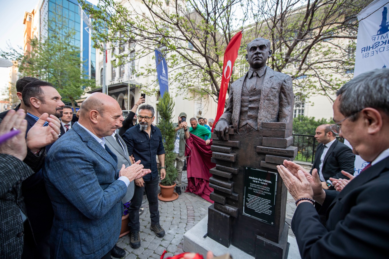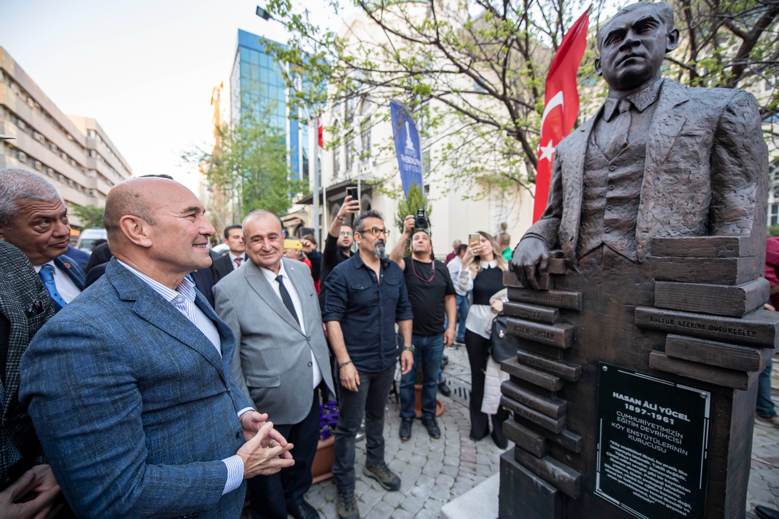 Panelin ardından Başkan Tunç Soyer, Milli Kütüphane Vakfı binasının önünde İzmir Büyükşehir Belediyesi Kültür ve Sanat Şube Müdürlüğü Plastik Sanatlar Şefliği heykeltıraşlarından Yücel Tonguç Sercan tarafından tasarlanan Hasan Ali Yücel heykelinin açılışını yaptı. Açılışta konuşan Başkan Soyer, “Köy Enstitüleri, Türkiye Cumhuriyeti tarihinde Anadolu’nun aydınlanması için son derece önemli bir adımdı. Bize ‘neden heykel yapıyorsunuz’ diye kimi zaman eleştiri geliyor. Öyle bir hız çağında yaşıyoruz ki, bu hız çağı bize köklerimizi, geçmişimizi unutturuyor maalesef. Anadolu’nun aydınlanma hareketi olan Köy Enstitüleri’nin kapatılması belki de bu toprakların en büyük talihsizliklerinden birisi” diye konuştu.