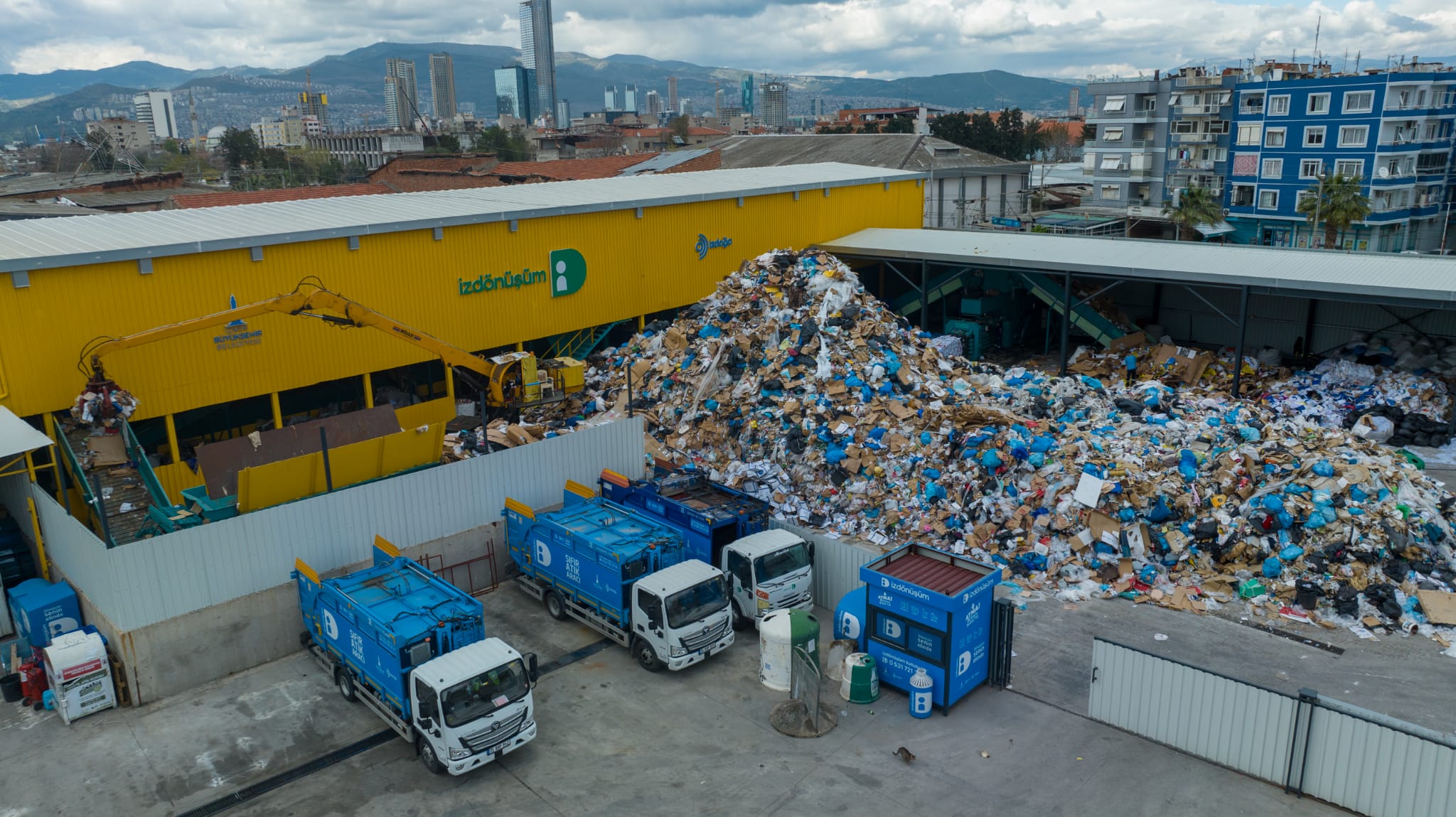 İzDönüşüm projesi kapsamında atıklar, sokaklardaki İzDönüşüm kutularından ve alışveriş merkezi, fabrika, hastane gibi yoğun nüfuslu alanlara yerleştirilen konteynerlerden toplanıyor. Kamyon ve elektrikli motosikletlerle toplanan atıklar, Konak’taki ambalaj atığı toplama ve ayrıştırma merkezine getiriliyor.