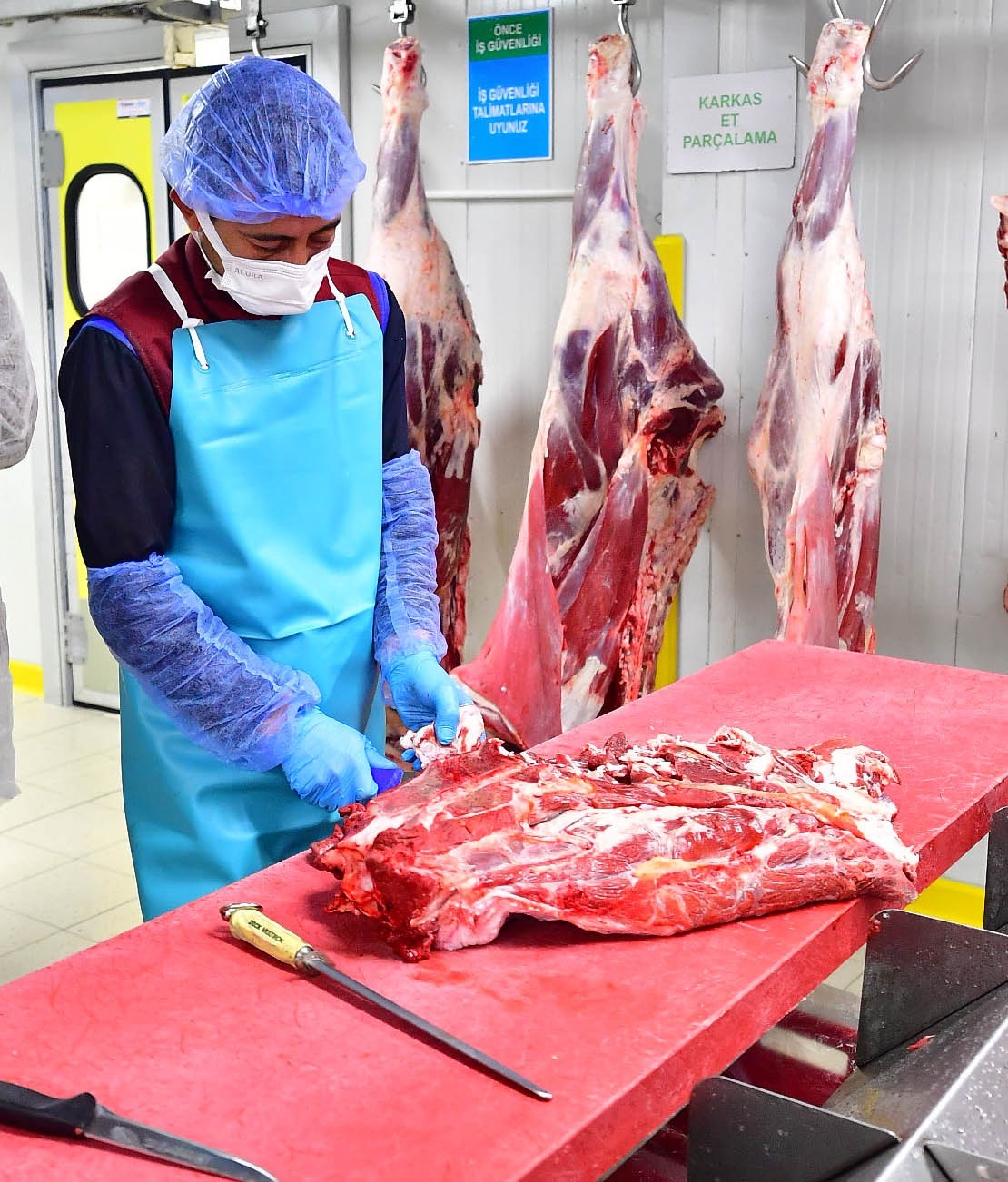 Son dönemde salgın hastalık riski taşıyan kırmızı ete karşın yerel üreticiden kimliği belli hayvanların alındığını ifade eden Murat Onkardeşler, “Halkın Bakkalları bize devrolduktan sonra buradaki yatırımı tüketicinin kazancına dönüştürmeyi hedefledik. Halkın Bakkalı içerisinde Halkın Kasabı reyonuyla yüksek et fiyatlarına karşı vatandaşımıza bir katkımız olsun istedik. Ödemiş, Kiraz, Tire, Bayındırlı üreticilerden aldığımız hayvanları günlük olarak bu tesiste parçalıyoruz. Sadece yerel üretici ile çalışıyoruz. Hem Tarım Bakanlığı’nın veteriner hekimi hem de kendi veteriner hekimimiz tesisimizde mevcut. Hayvanın tüm geçmişi, kaydı incelendikten sonra kesim yapılıyor. Çok şükür bölgemizde her hangi bir şap hastalığına rastlamadık. İleri işlemden geçirdikten sonra da Menemen’deki lojistik merkezimize sevk ediyoruz. Oradan da bugün sayıları 9’u bulan Halkın Bakkalları’ndaki Halkın Kasabı reyonlarına gönderiyoruz” dedi.