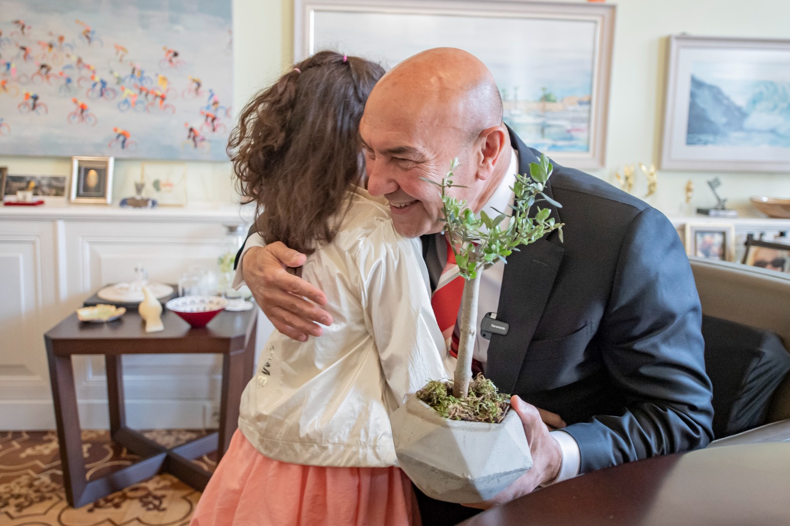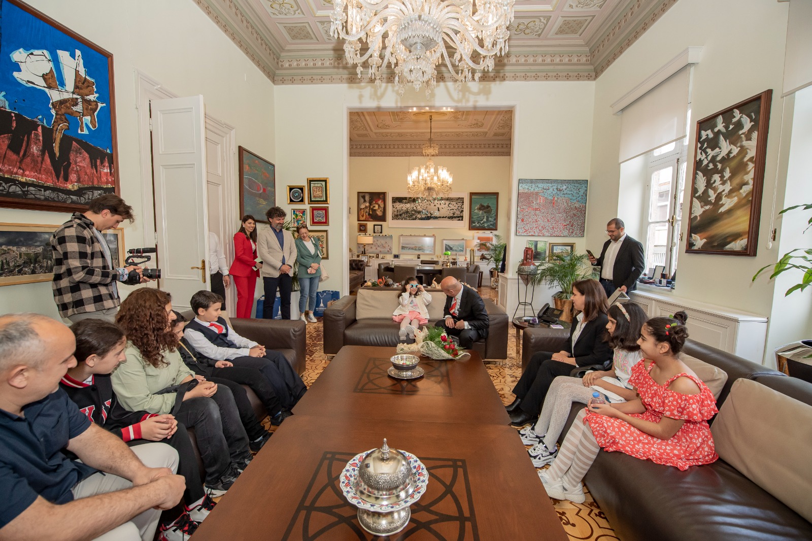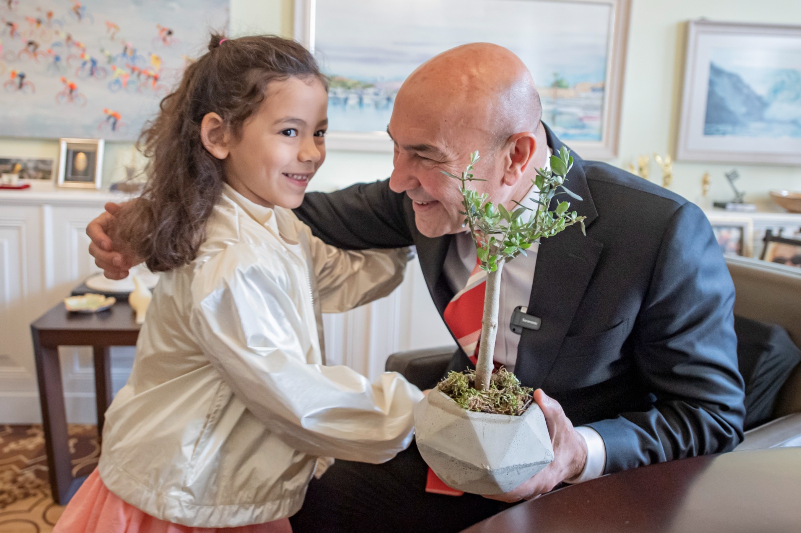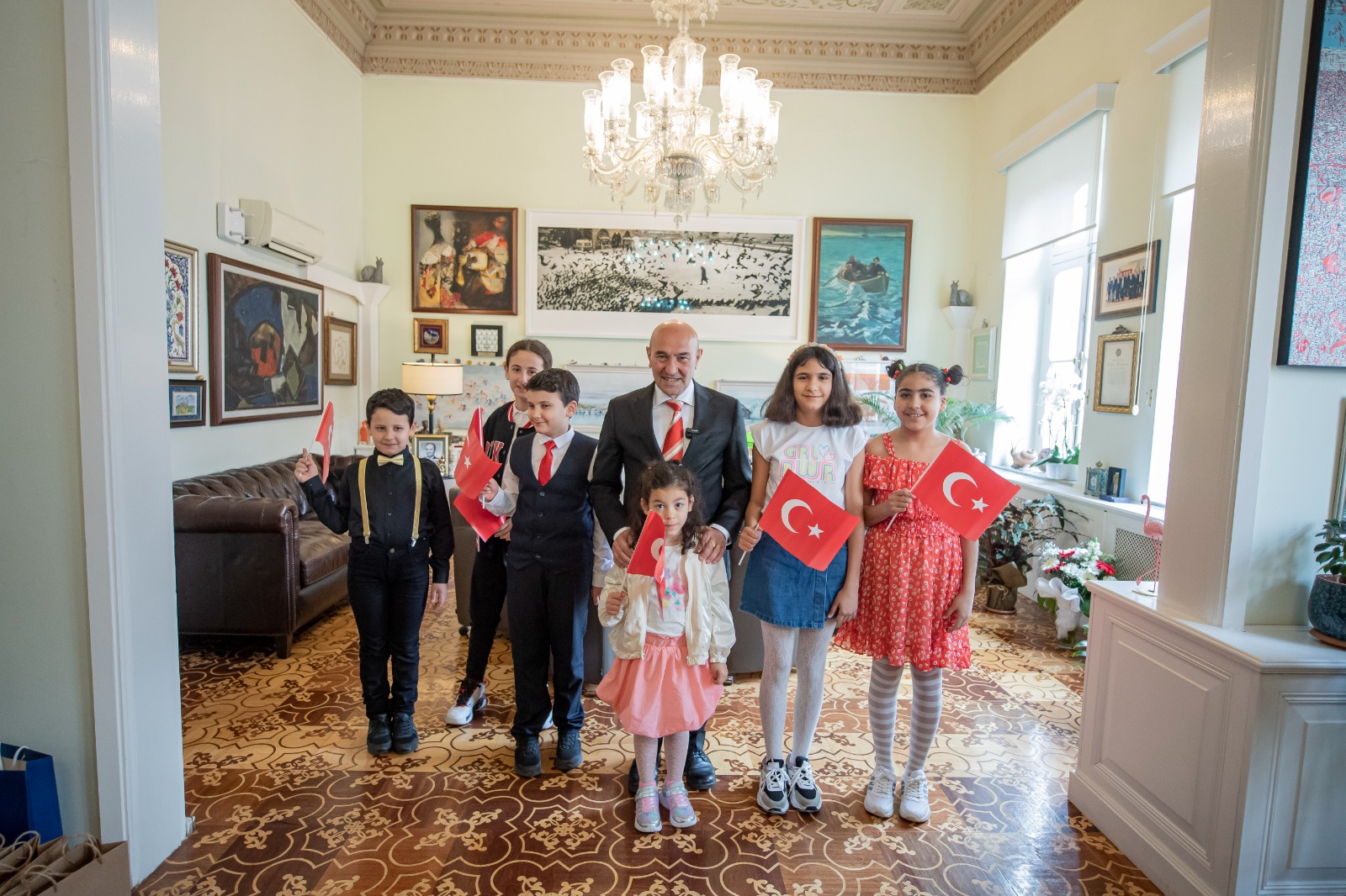 İzmir Büyükşehir Belediye Başkanı Tunç Soyer, 23 Nisan Ulusal Egemenlik ve Çocuk Bayramı’nda makamında çocukları konuk etti.