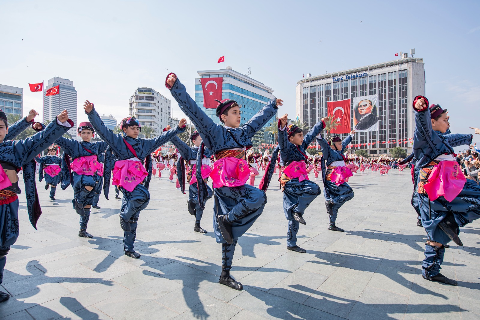 İzmir'de 23 Nisan Ulusal Egemenlik ve Çocuk Bayramı coşkuyla kutlandı. Cumhuriyet Meydanı’ndaki tören renkli görüntülere sahne oldu.