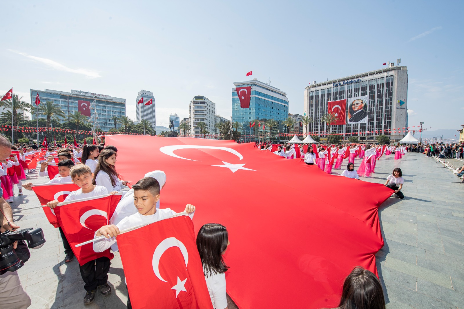 Ulu Önder Mustafa Kemal Atatürk’ün tüm dünya çocuklarına armağan ettiği 23 Nisan Ulusal Egemenlik ve Çocuk Bayramı İzmir’de coşkuyla kutlandı. Resmi kutlamaların adresi Cumhuriyet Meydanı'ndaki kutlama törenine İzmir Valisi Yavuz Selim Köşger, İzmir Büyükşehir Belediye Başkanı Tunç Soyer ve eşi Neptün Soyer, Hava Eğitim Komutanı Korgeneral İsmail Güneykaya ve eşi Aygül Güneykaya, İzmir milletvekilleri, siyasi parti temsilcileri, ilçe belediye başkanları, rektörler ve çok sayıda yurttaş katıldı.