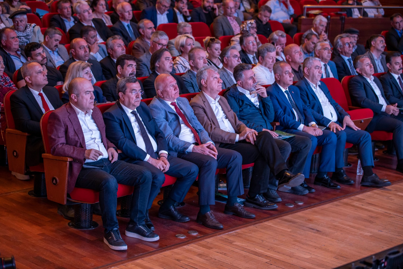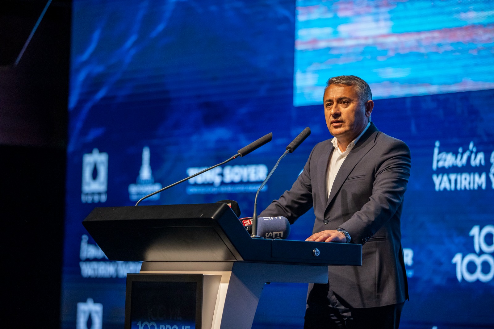 İZSU Genel Müdürlüğü’nün Akdeniz şehirlerine örnek olacak çok sayıda yenilikçi projeye imza attığını ifade eden Başkan Tunç Soyer, “Sessiz sedasız ve derin bir tevazuyla yürütülen bu projelerin her biri çok yakında su yüzüne çıkarak İzmir’in başka bir su yönetimi mümkün anlayışını gözler önüne serecek. İşte bugün, Cumhuriyetimizin yüzüncü yılında yüz proje buluşmamızda bunun için bir araya geldik. Bugün sizlere, stratejisiyle, eylemleriyle ve elbette ekibiyle iftihar ettiğim İZSU’nun 100 projesini anlatıyoruz. Birbirinden bağımsız gibi görünen bu projeler bir araya geldiğinde, İzmir için dört önemli işi başarıyoruz. Her şeyden önce, Türkiye’nin ağırlaşan kuraklık koşullarına rağmen tek bir İzmirliyi susuz bırakmıyoruz. İzmir’in su güvenliğini gelecek nesiller için teminat altına alıyoruz. İkincisi, köylerinden yeni gelişen metropol alanlarına kadar, tüm İzmir’i ve İzmirlileri en yüksek arıtma teknolojileriyle buluşturuyoruz. Üçüncü olarak İzmir genelinde suyun ekolojik dengelerini koruyoruz. Döngüsel ekonomiyi destekliyor ve kullanılan su kaynaklarının geri kazanımını sağlıyoruz. Bugüne kadar hiç uygulanmamış çok kapsamlı bir stratejiyle İzmir Körfezi’ni temizliyor, ‘Yaşayan Körfez’ programını uyguluyoruz” diye konuştu.