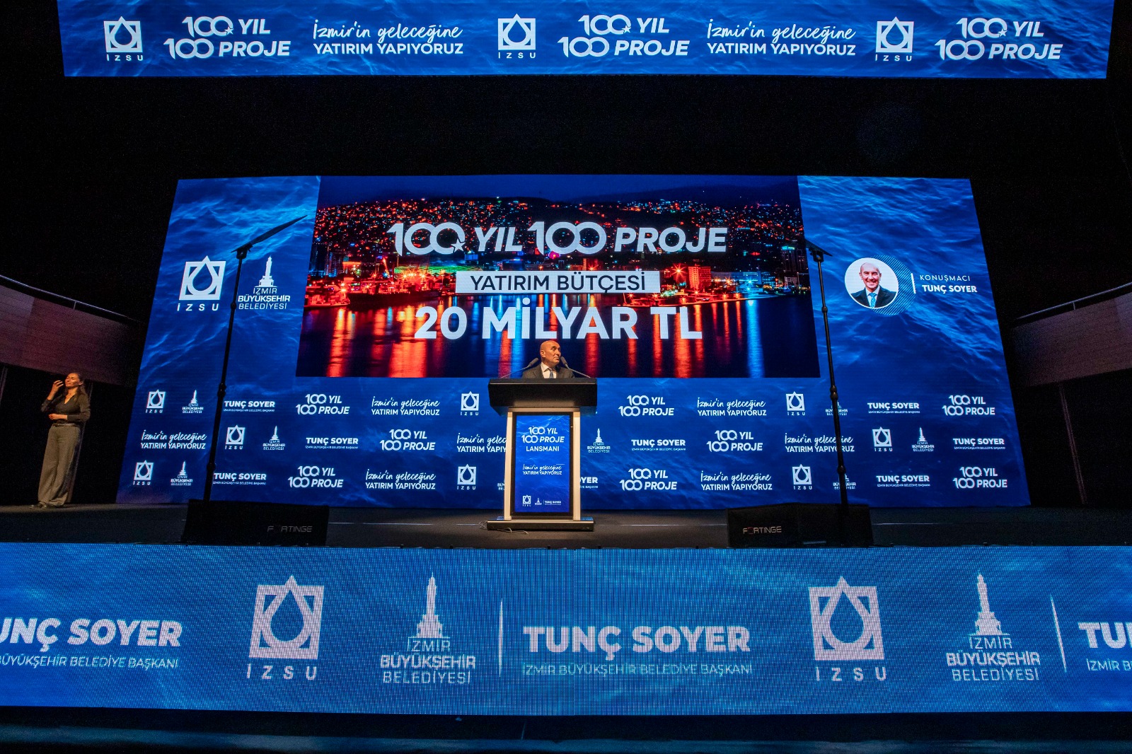 - İZSU Genel Müdürlüğü Cumhuriyet’in 100’üncü yılında 100 dev projeye imza atıyor. İzmir Büyükşehir Belediye Başkanı Tunç Soyer, İZSU tarafından 2023 yılı içinde başlatılan ve yine 2023 yılı içinde önemli bir bölümünün tamamlanması hedeflenen 100 projeyi Ahmed Adnan Saygun Sanat Merkezi’nden kamuoyuyla paylaştı.