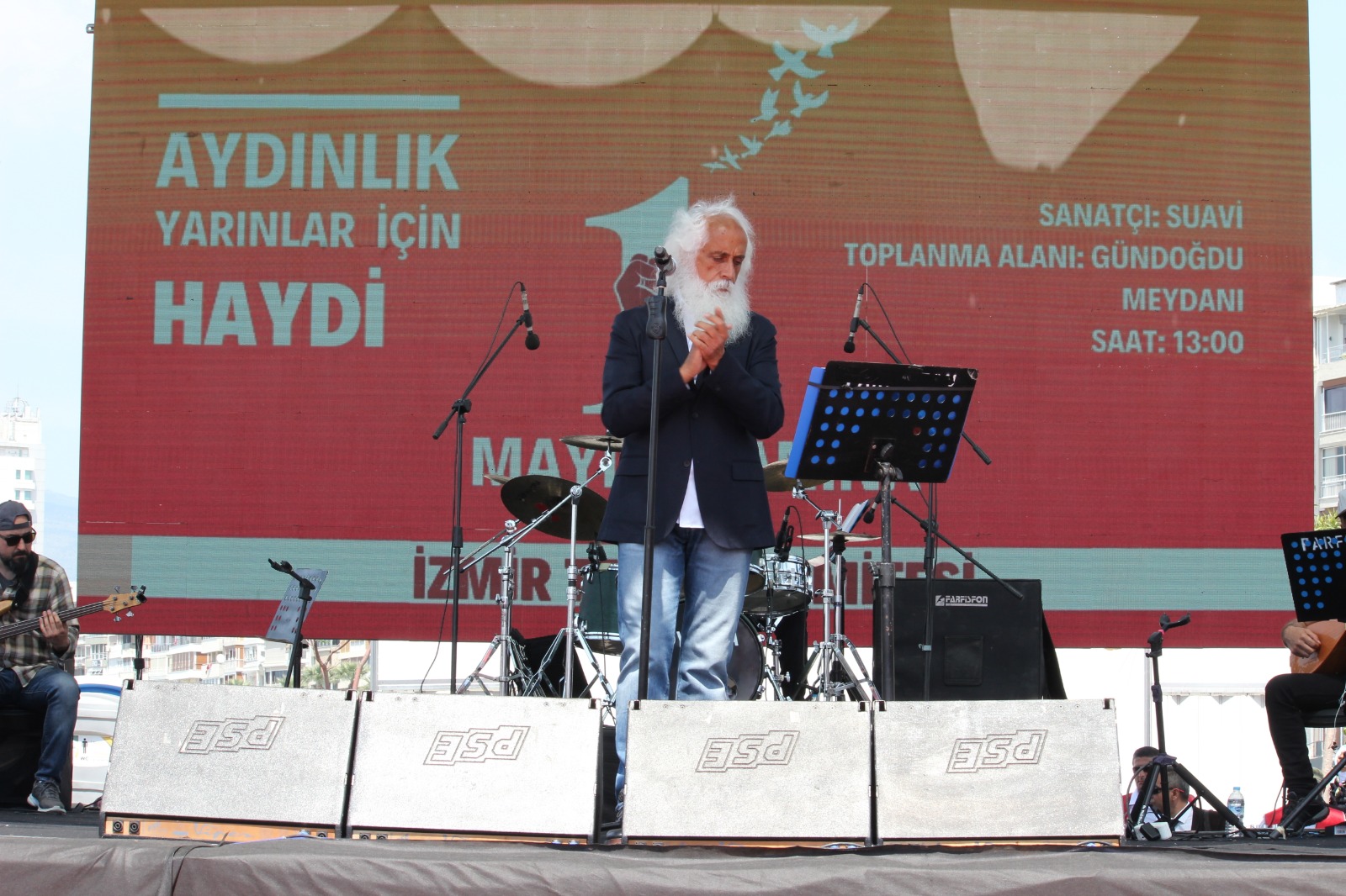 Mitingin ardından Gündoğdu Meydanı’ndaki emekçiler İzmir Büyükşehir Belediyesi’nin düzenlediği Suavi konserine katıldı. Suavi, “15 Mayıs sabahına rahat bir ülkeye uyanmayı yürekten istiyorum. Hiç kimse bana arkadaş şarkını söyle, bu işe karışma demesin, ben her şeye karışmak üzerine yaratılmış bir insanım. Ben dediysem doğrudur zihniyetin çok sesliliğe olan inancımla ve saygımla kınıyorum.15 Mayıs'a insan gibi uyanmak istiyorum” dedi.